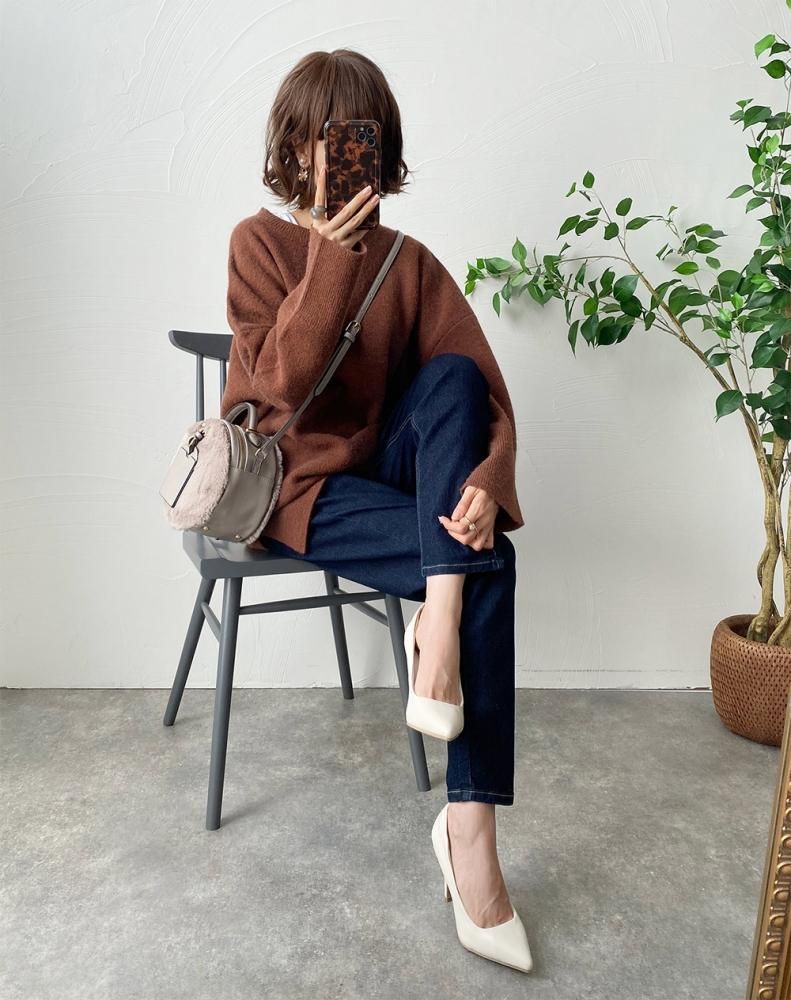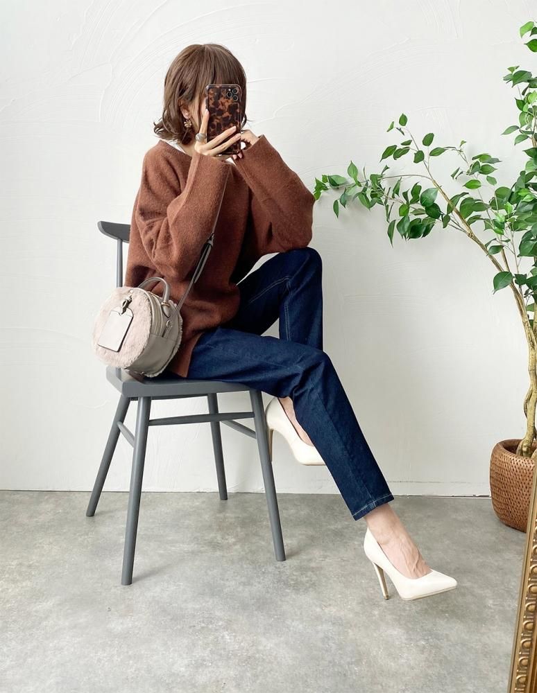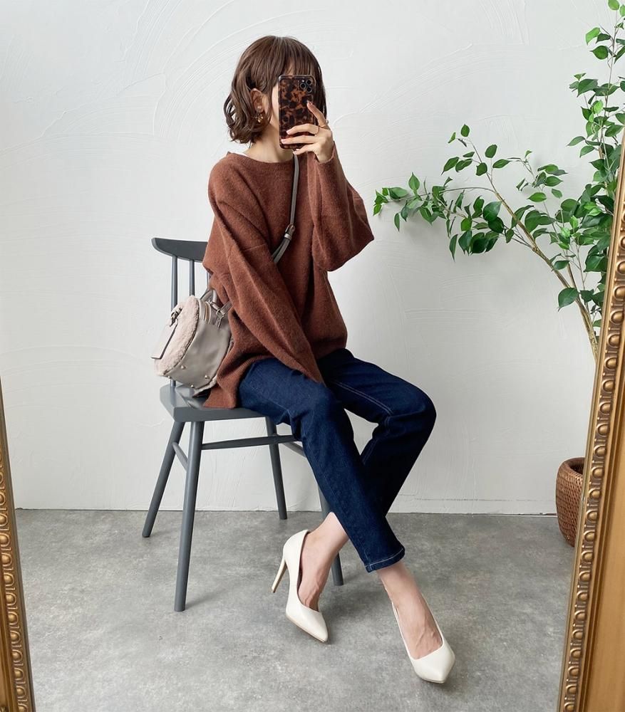 くしゅくしゅ袖が可愛い 指穴あきタートルネックニット