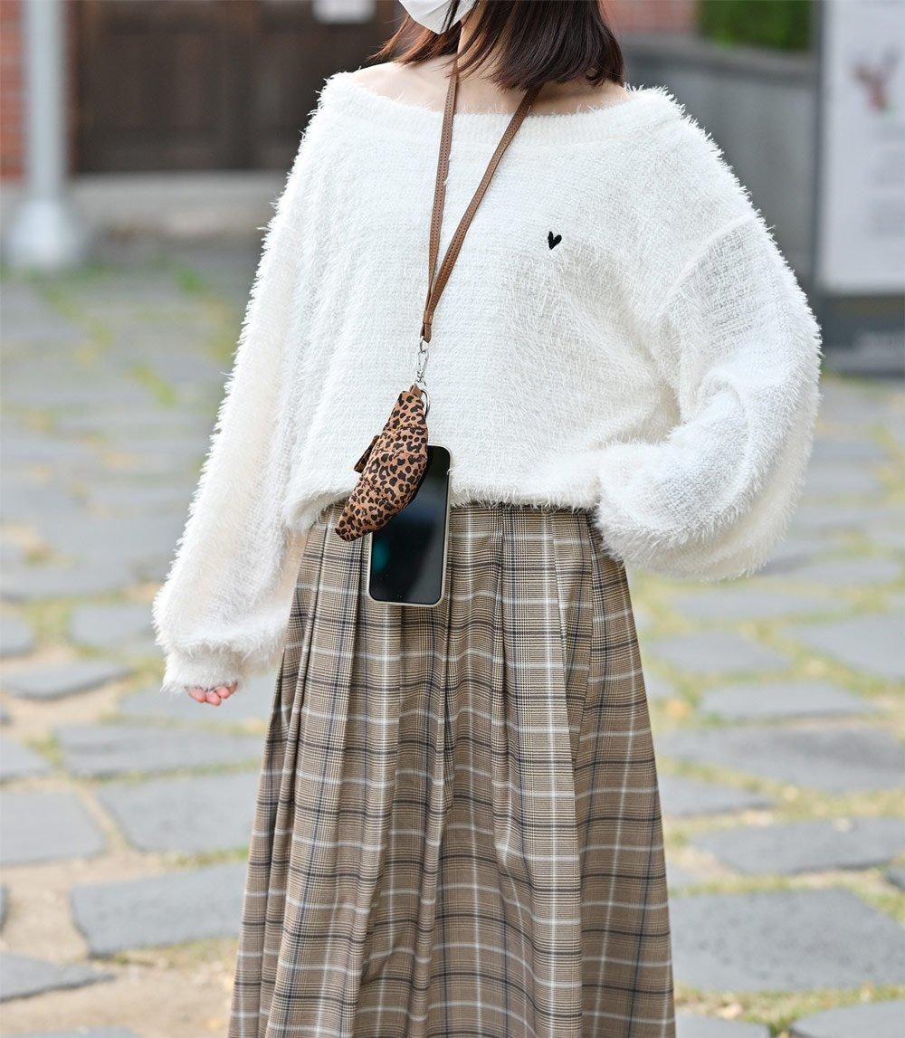 ハート刺繍スポンジニットプルオーバー