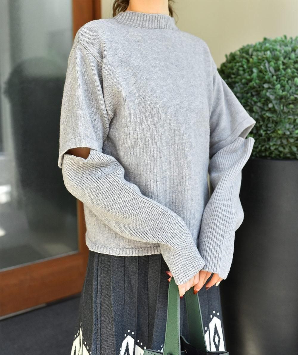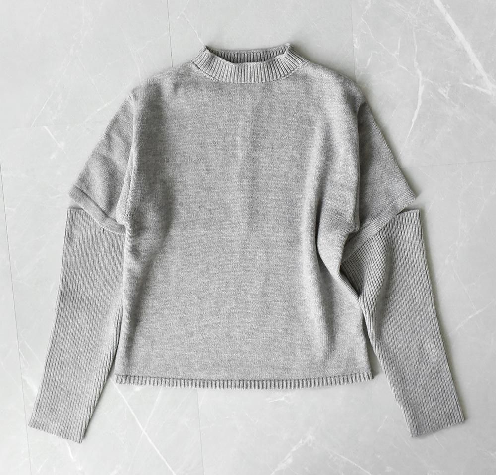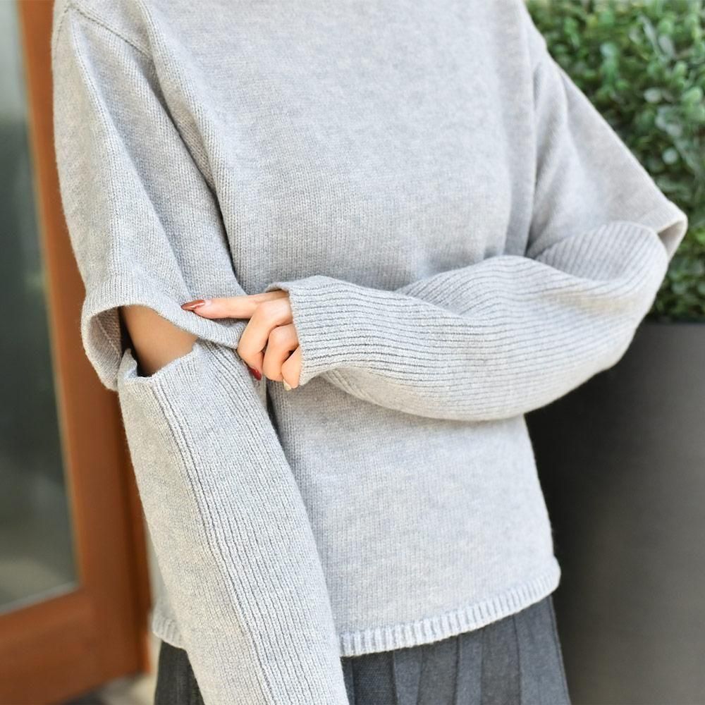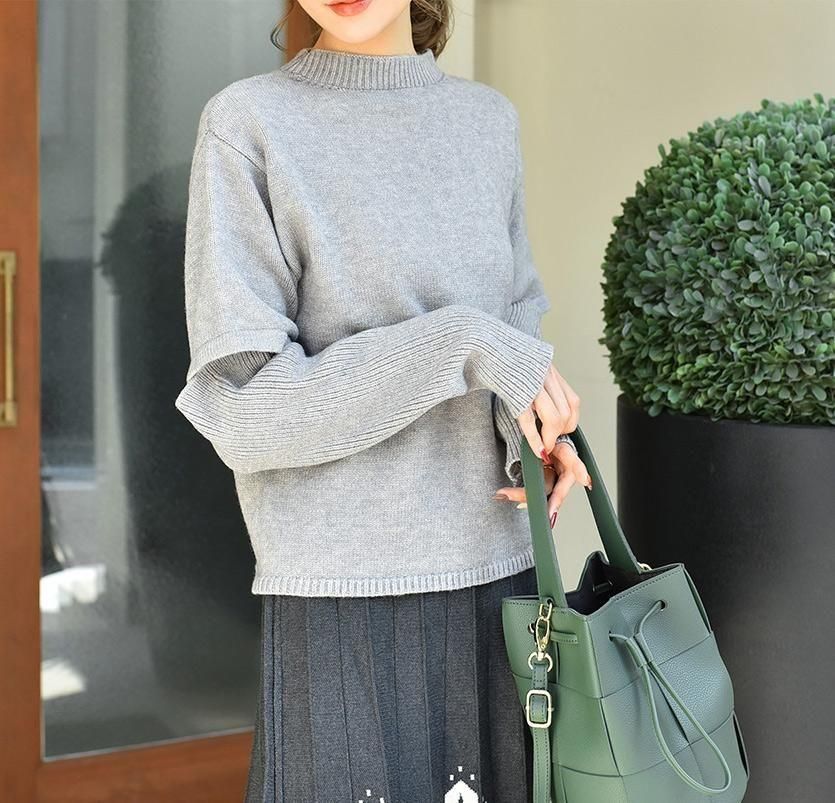 くしゅくしゅ袖が可愛い 指穴あきタートルネックニット
