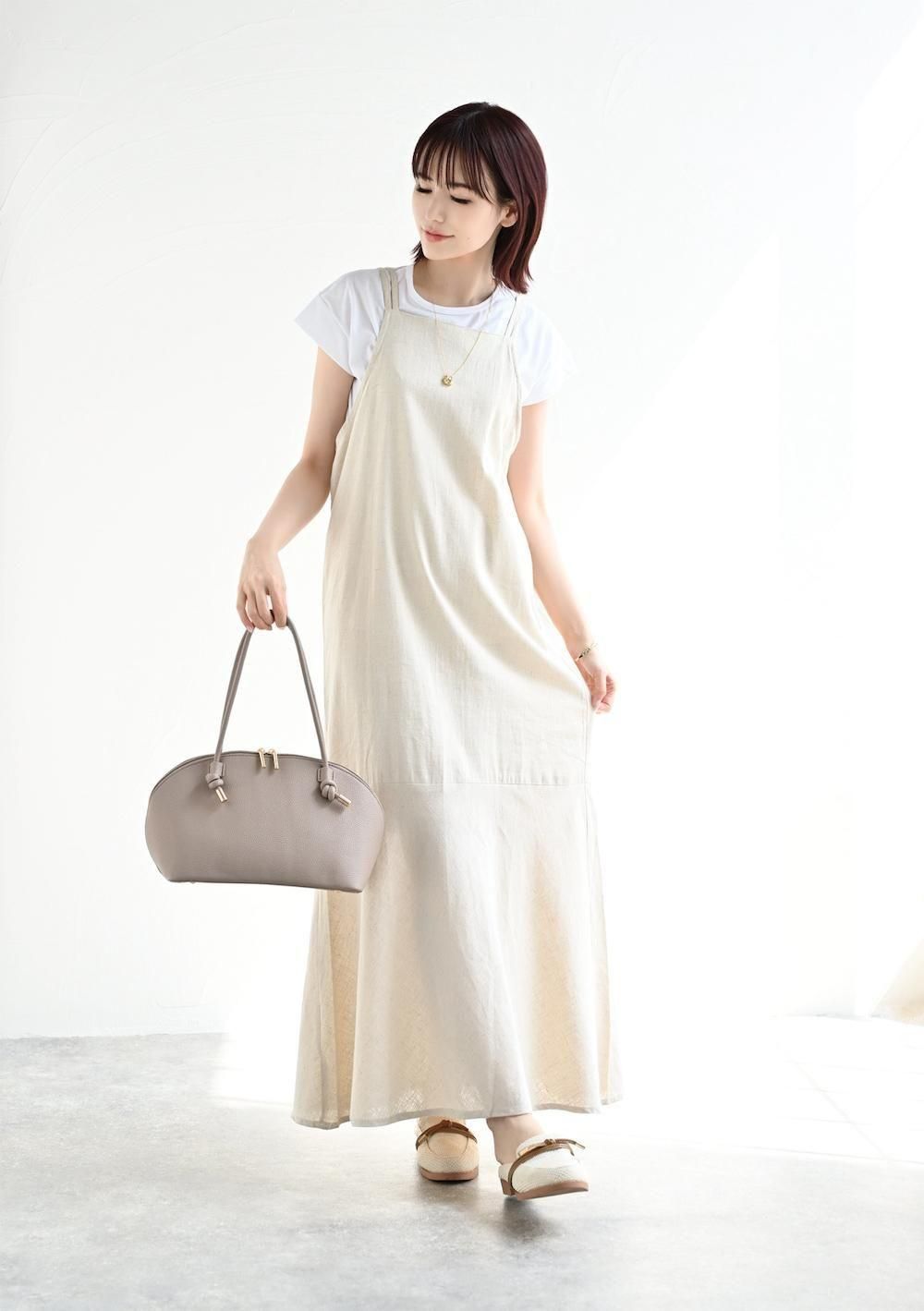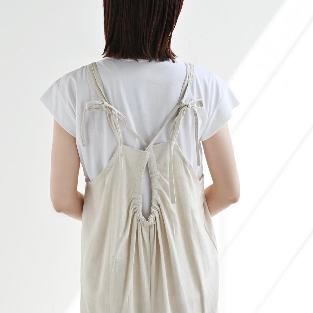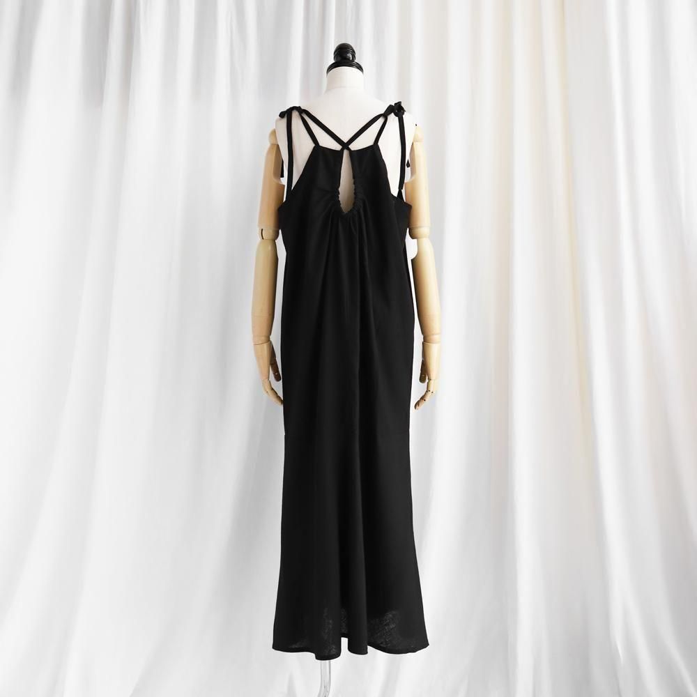 バックリボン麻レーヨンキャミワンピース