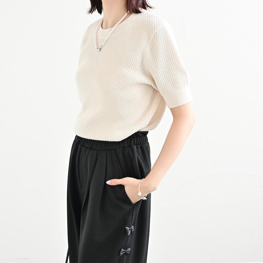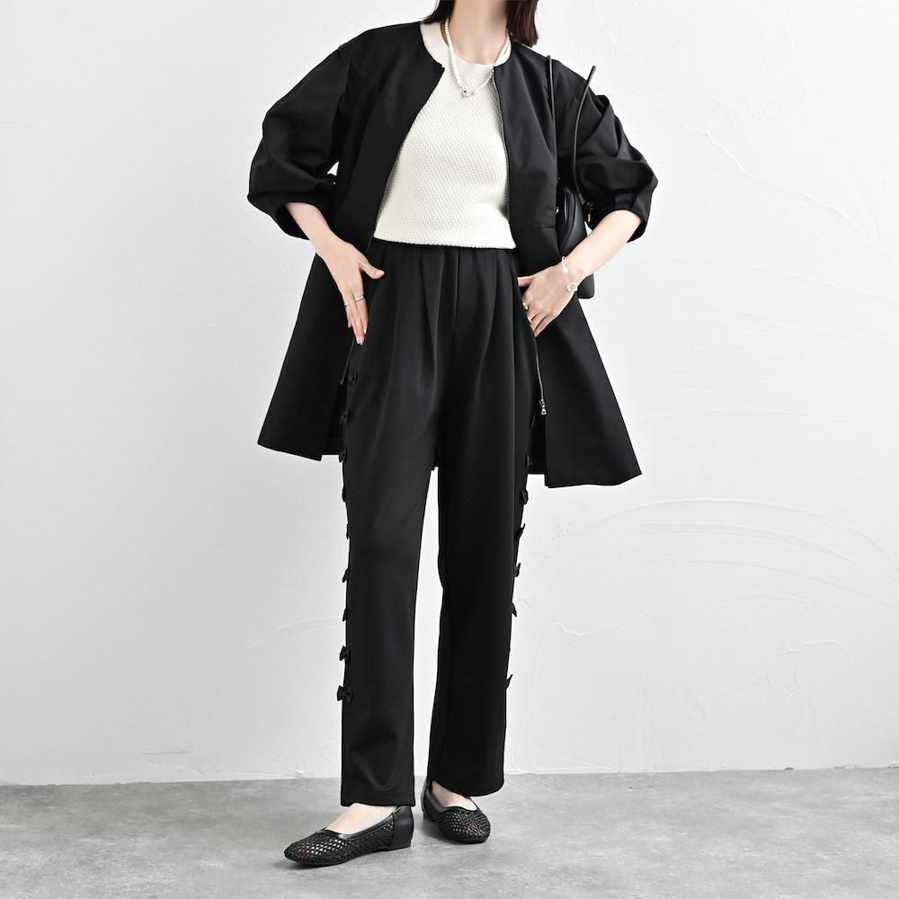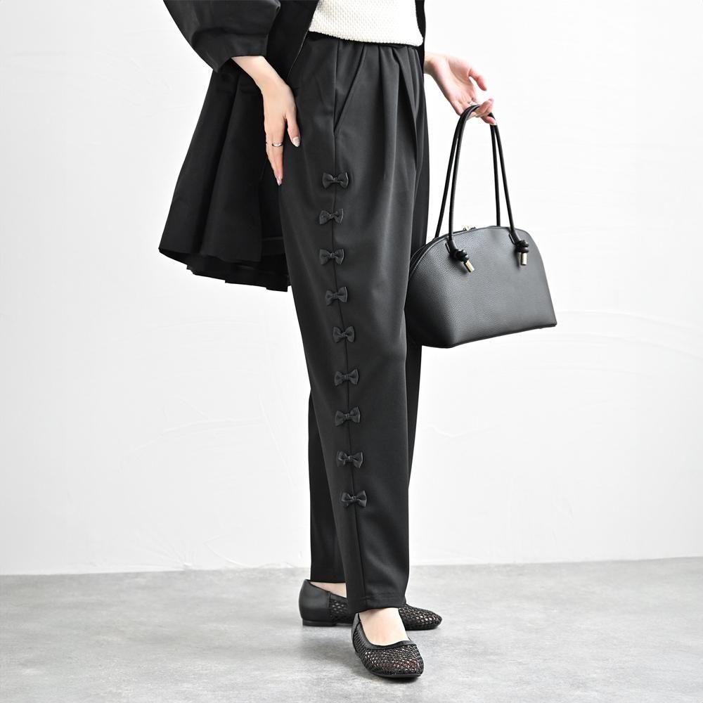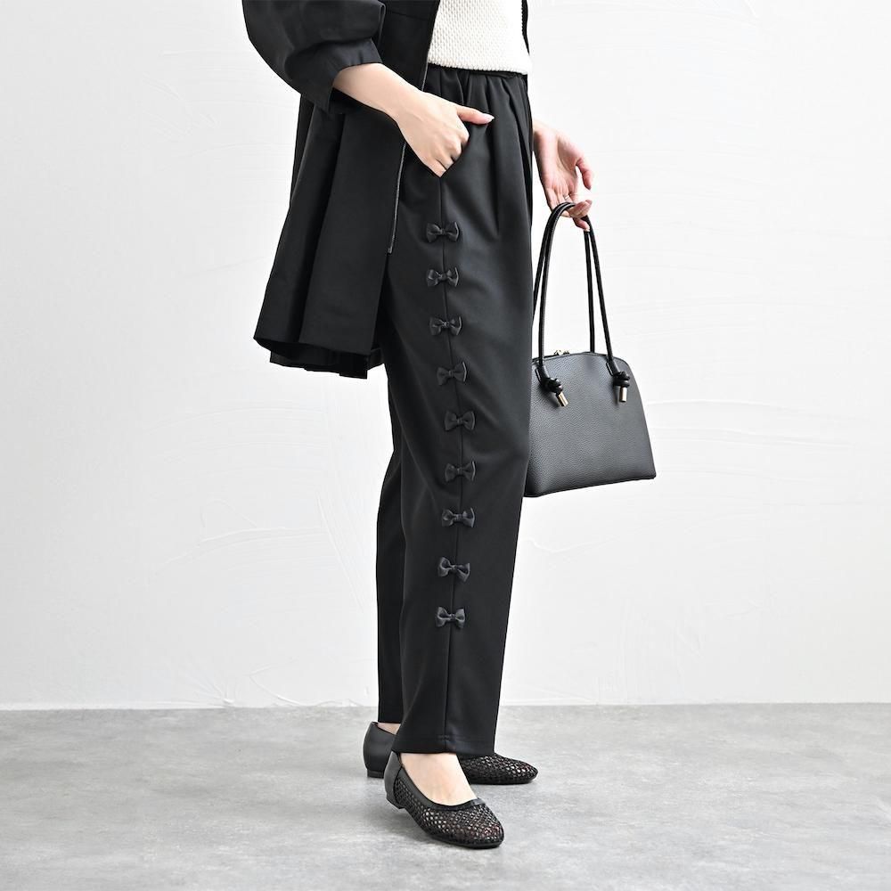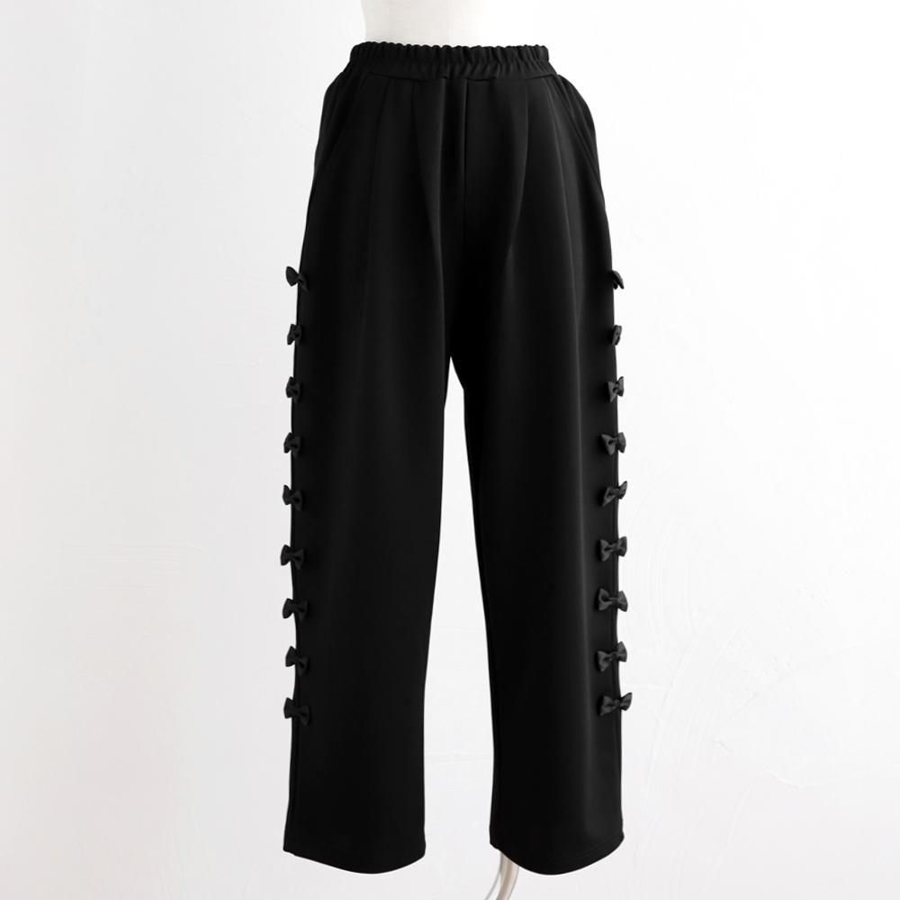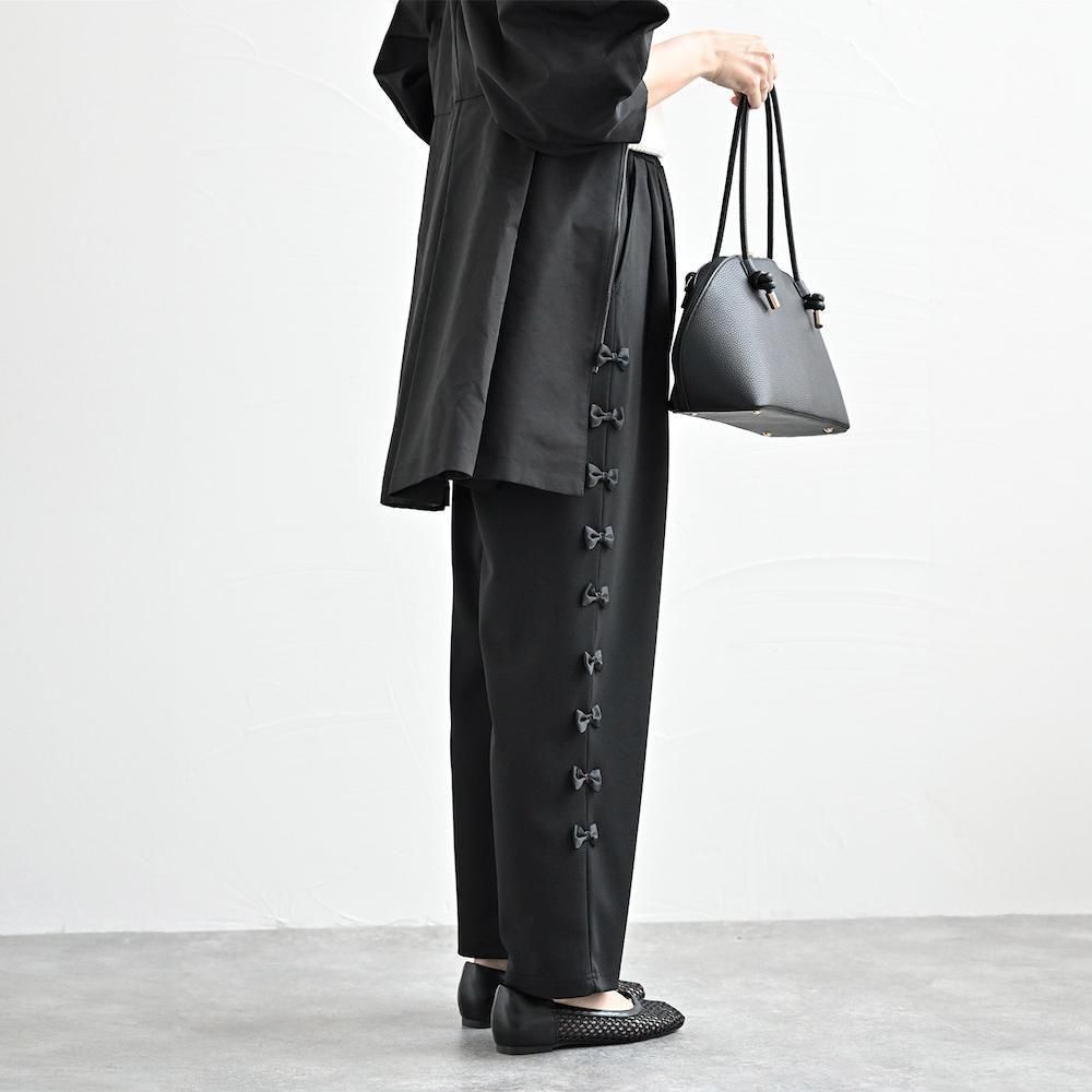 【SALE】【ゆうパケ】【M〜L対応】サイドリボン付きタックパンツ