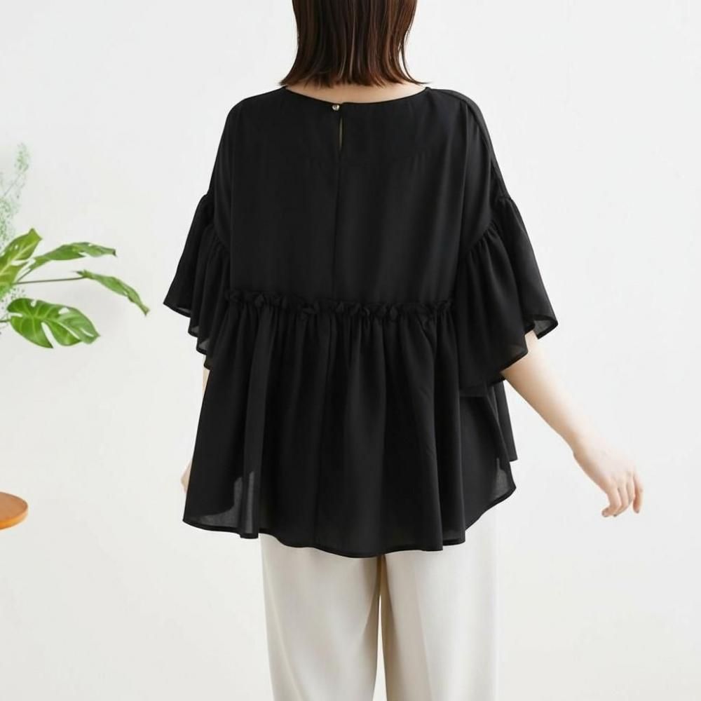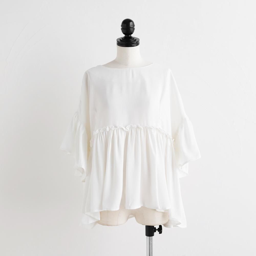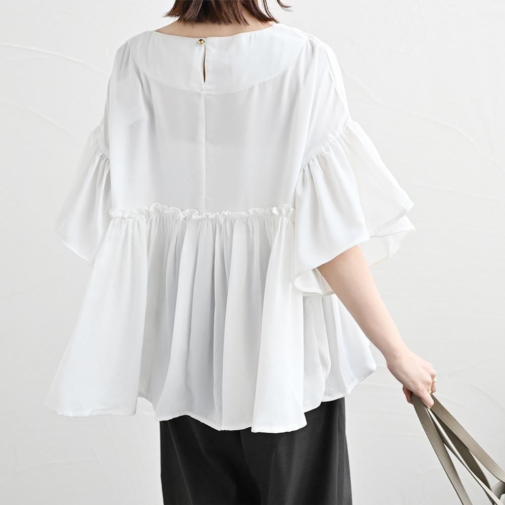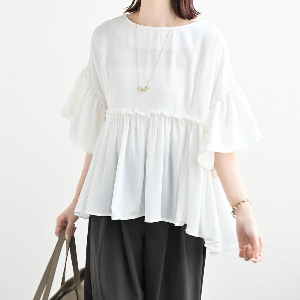 【SALE】【ゆうパケ】ヘビージョーゼット素材フリルペプラムブラウス