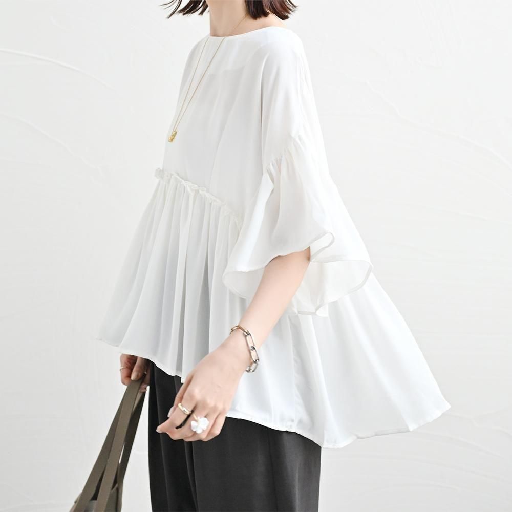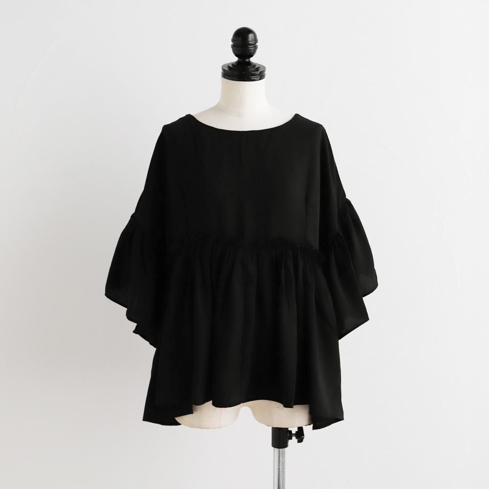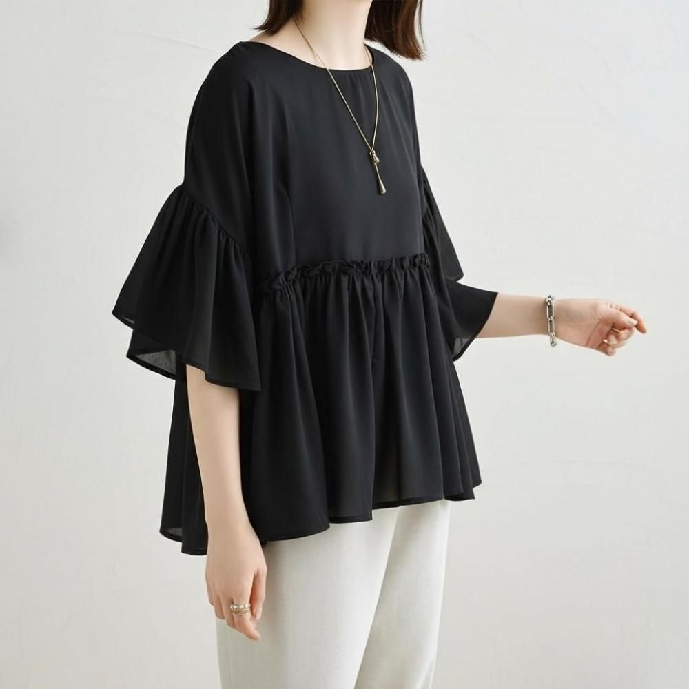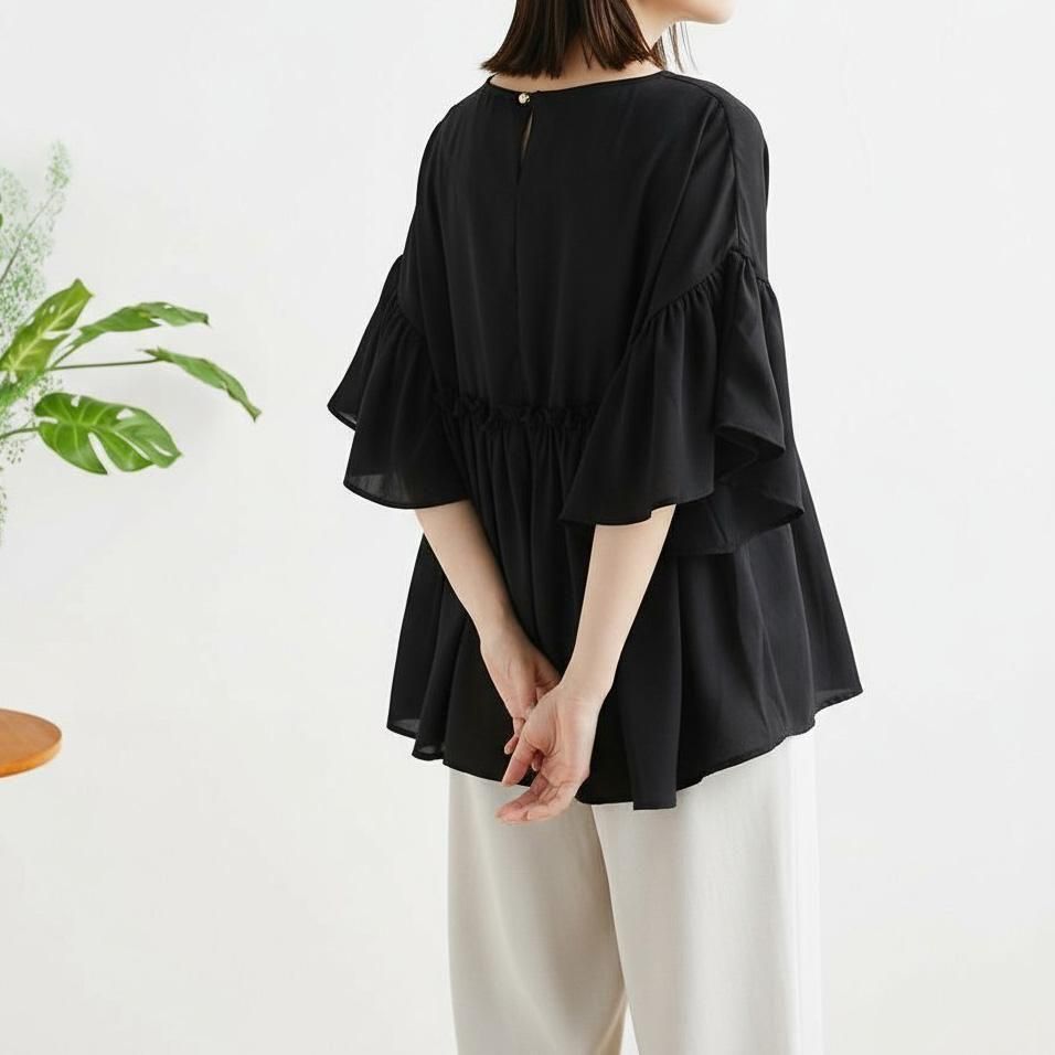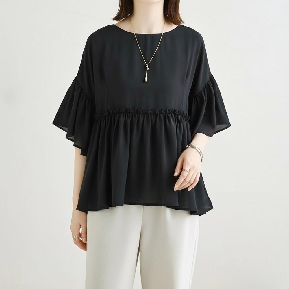 【SALE】【ゆうパケ】ヘビージョーゼット素材フリルペプラムブラウス