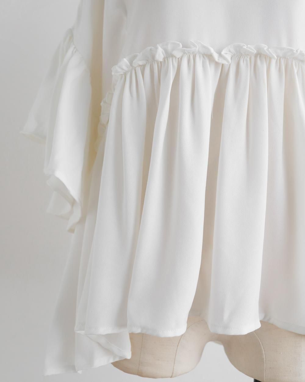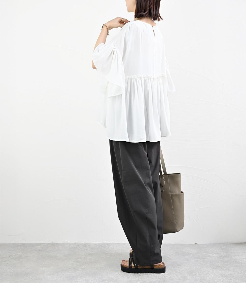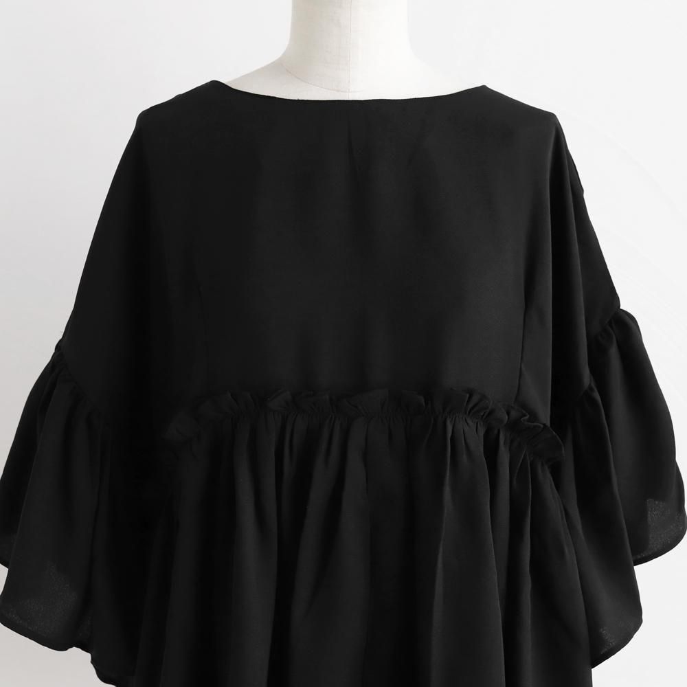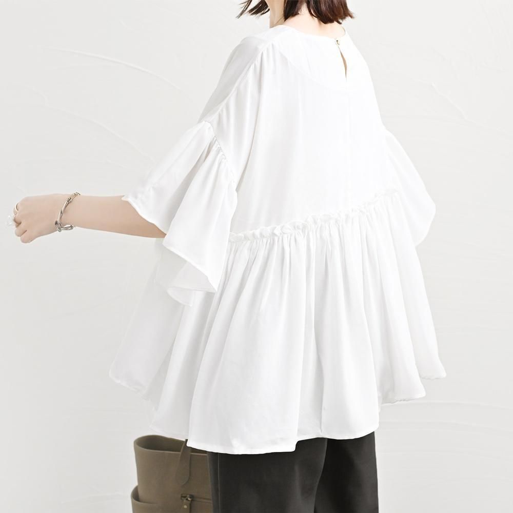 【SALE】【ゆうパケ】ヘビージョーゼット素材フリルペプラムブラウス
