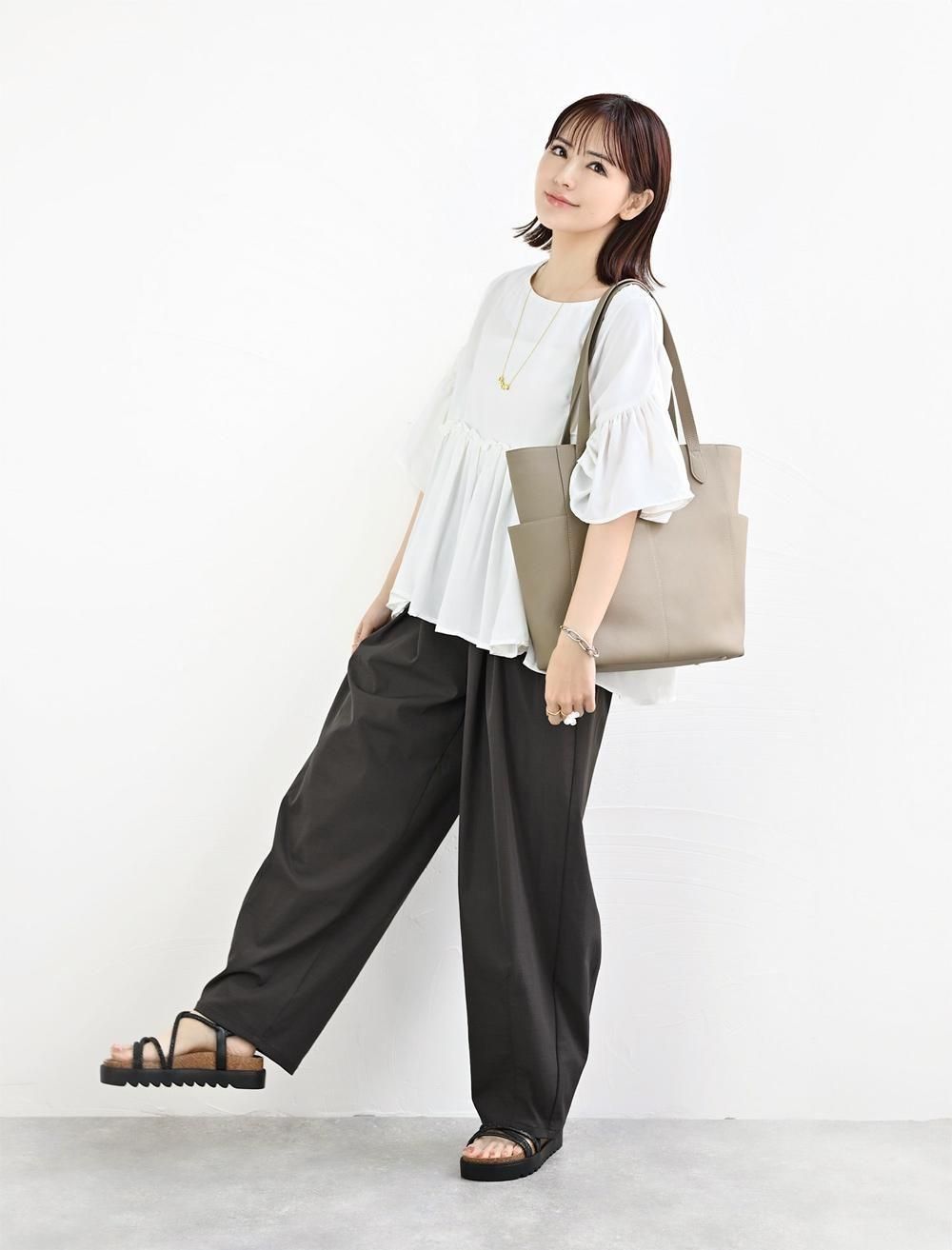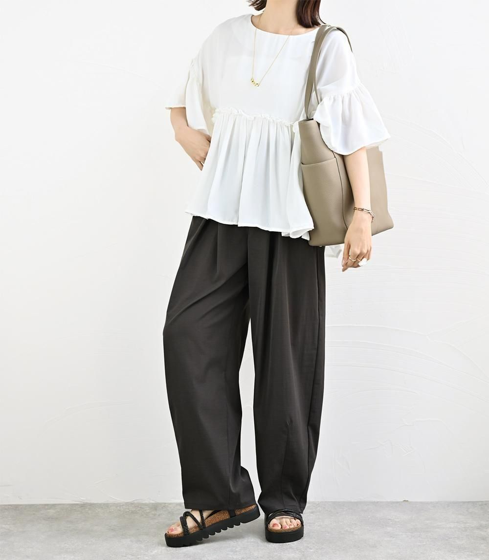 ポケットパール付き 裾バックプリーツセンターシームパンツ