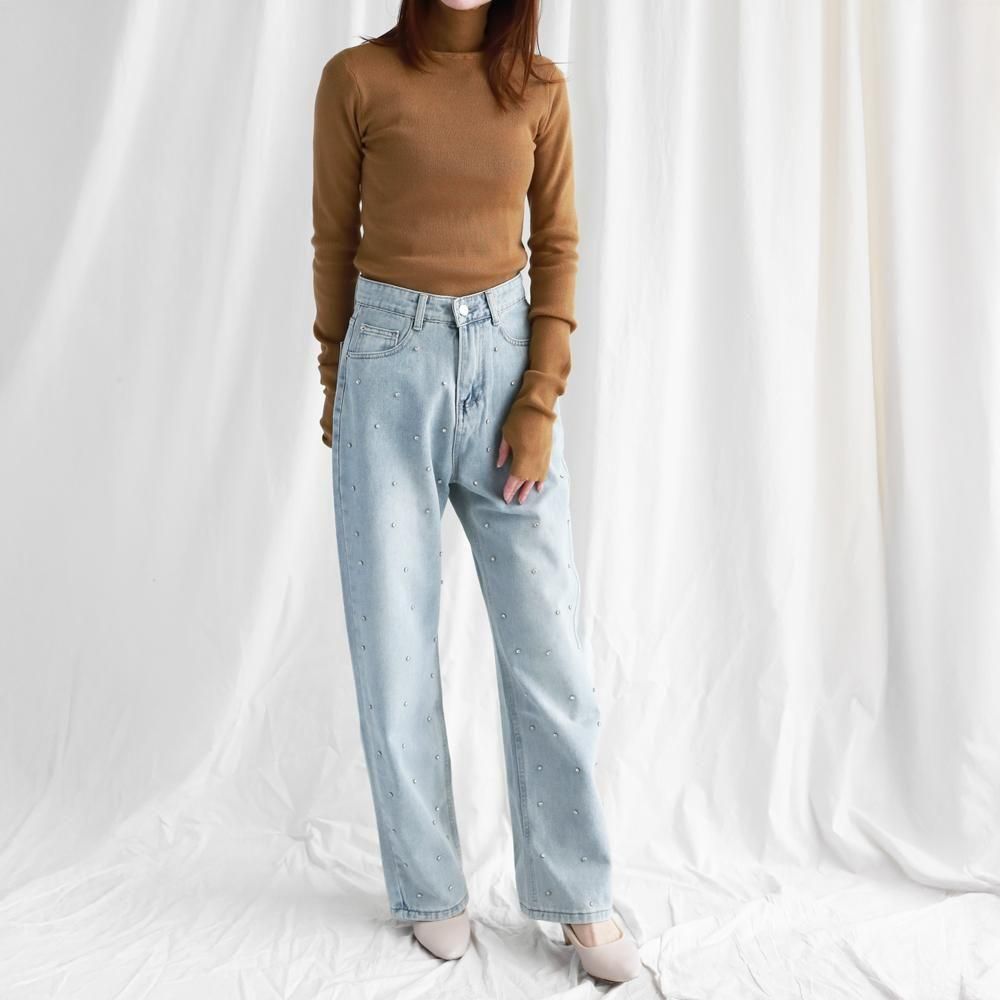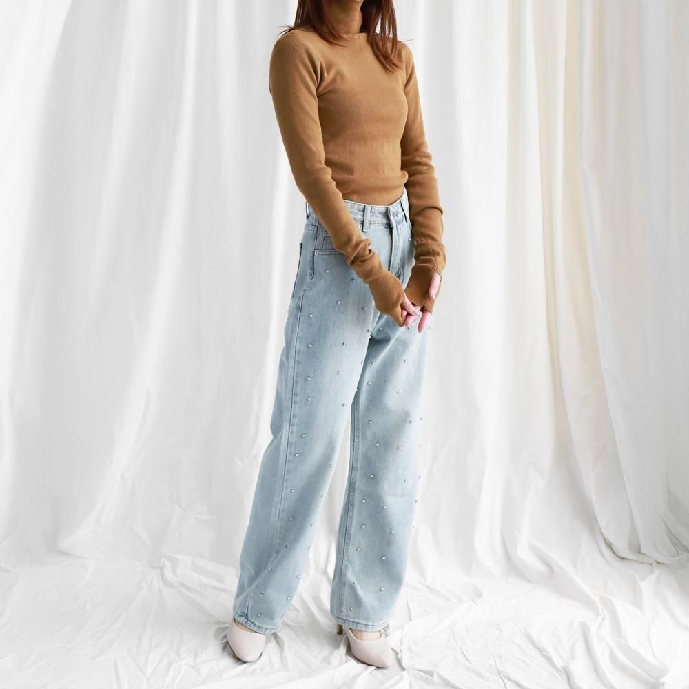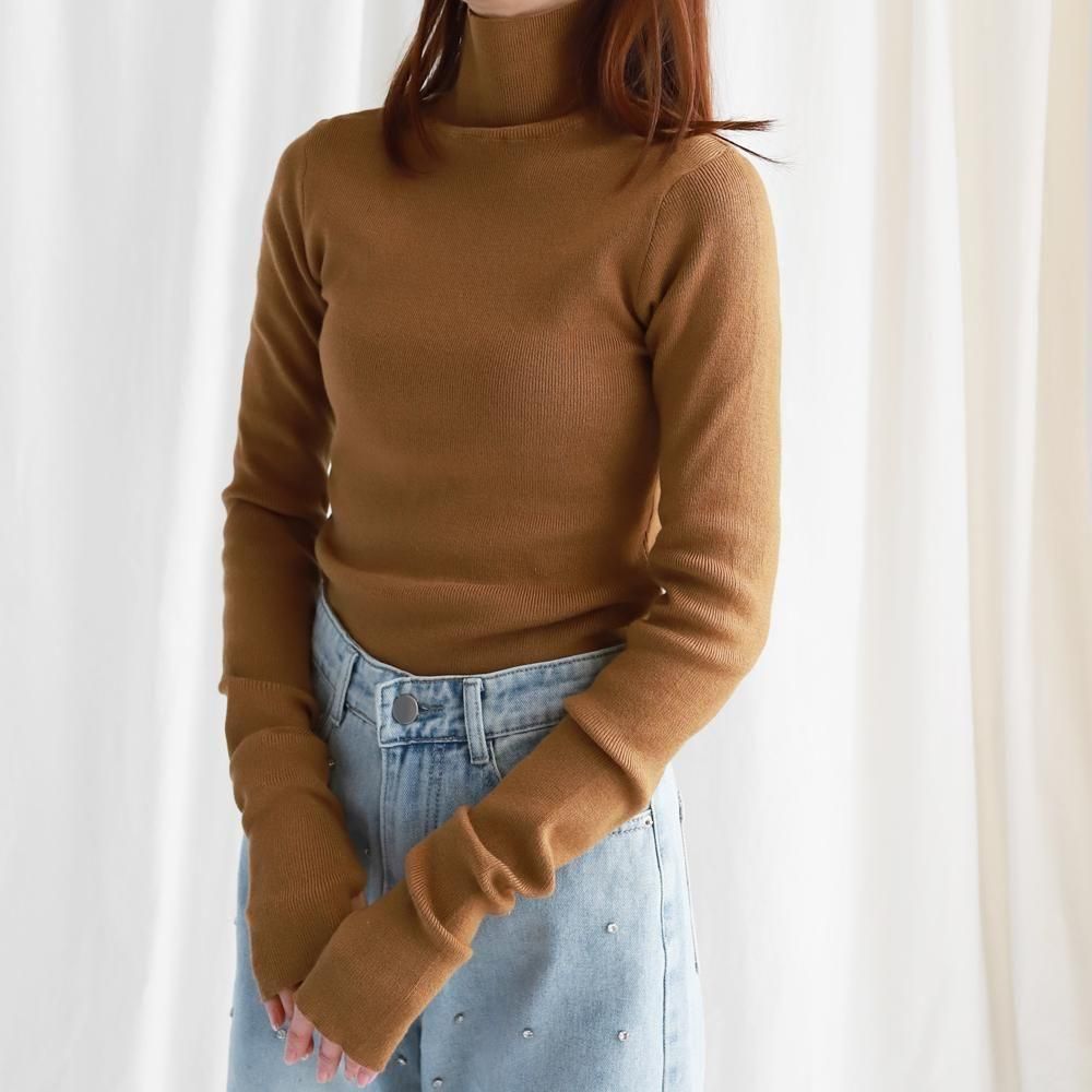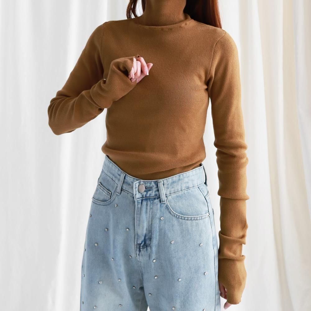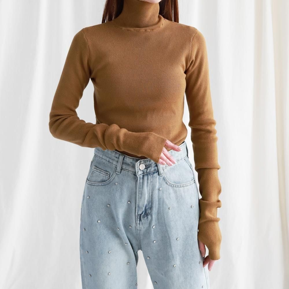 くしゅくしゅ袖が可愛い 指穴あきタートルネックニット