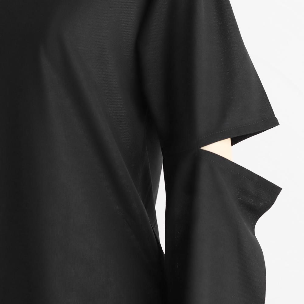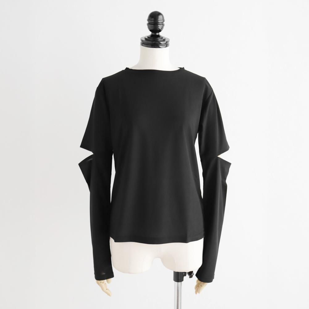 シンプルなシルエットながらも、袖のカットデザインが程よくエッジを効かせ、洗練された個性を演出します。