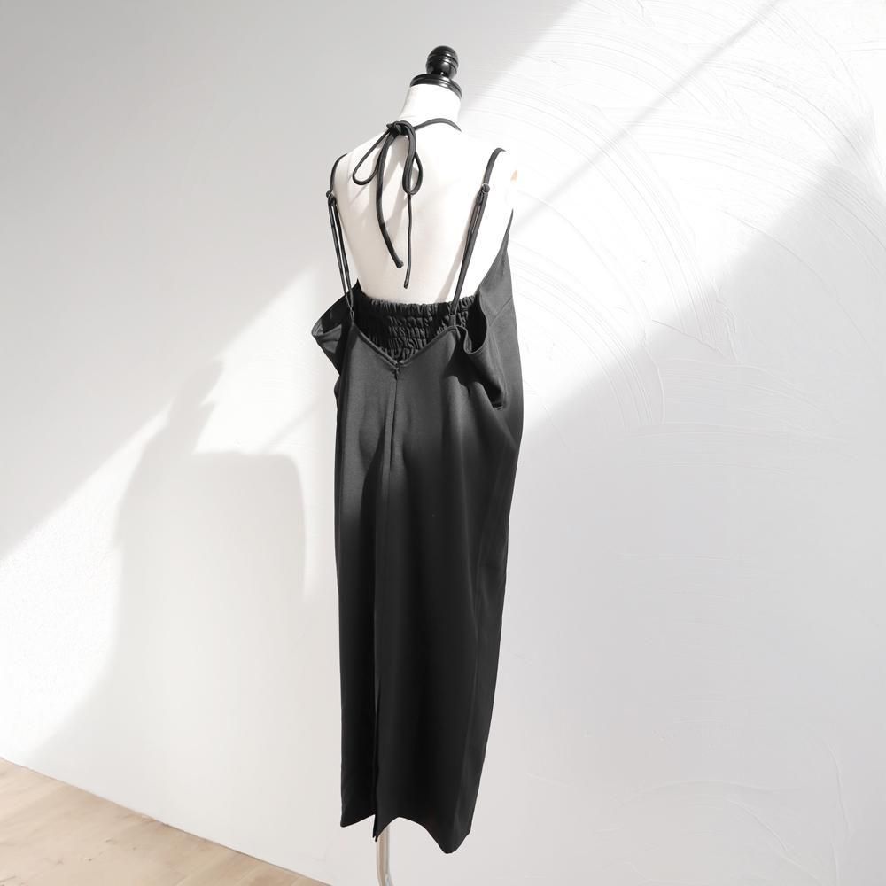 バックリボン麻レーヨンキャミワンピース