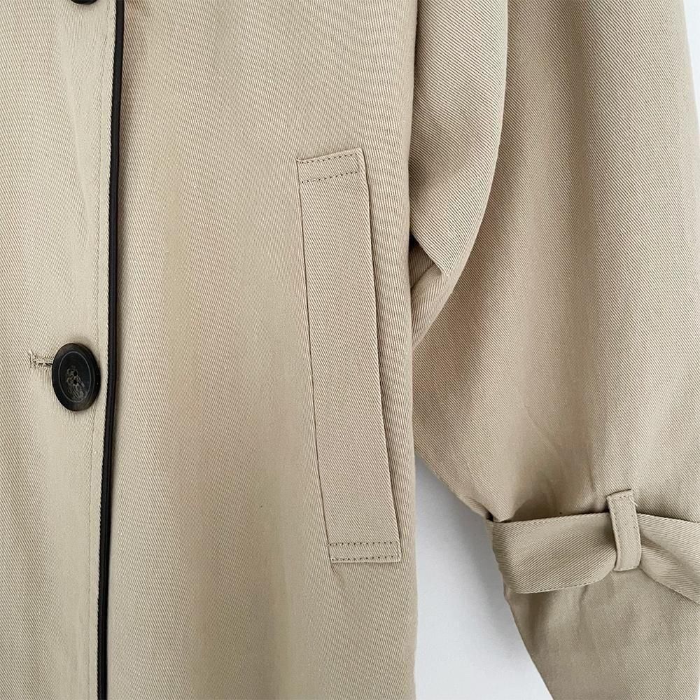 ロングシーズン使えるツイル素材を使用したトレンチコート。