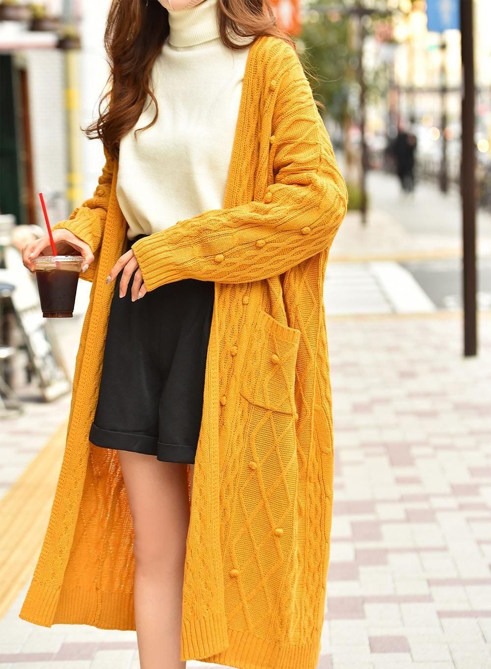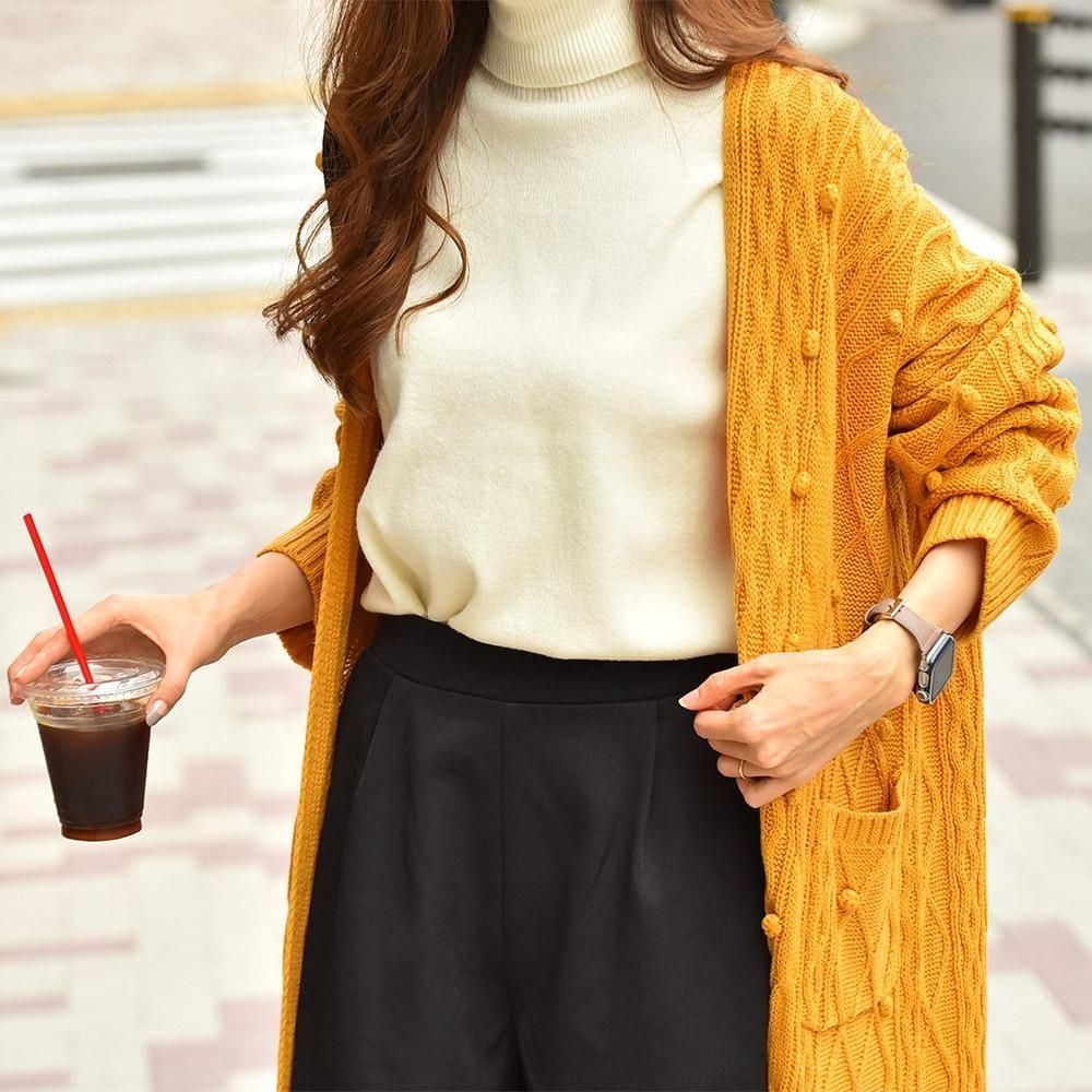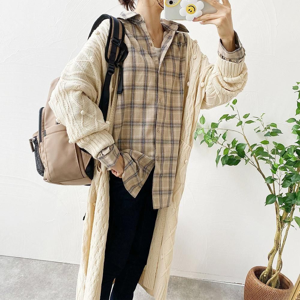 【SALE】ポップコーン×ケーブル編みロングニットカーディガン