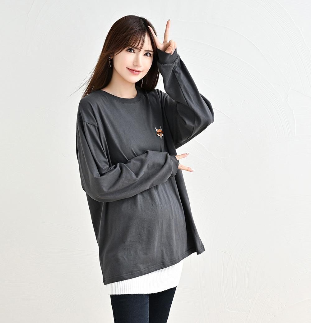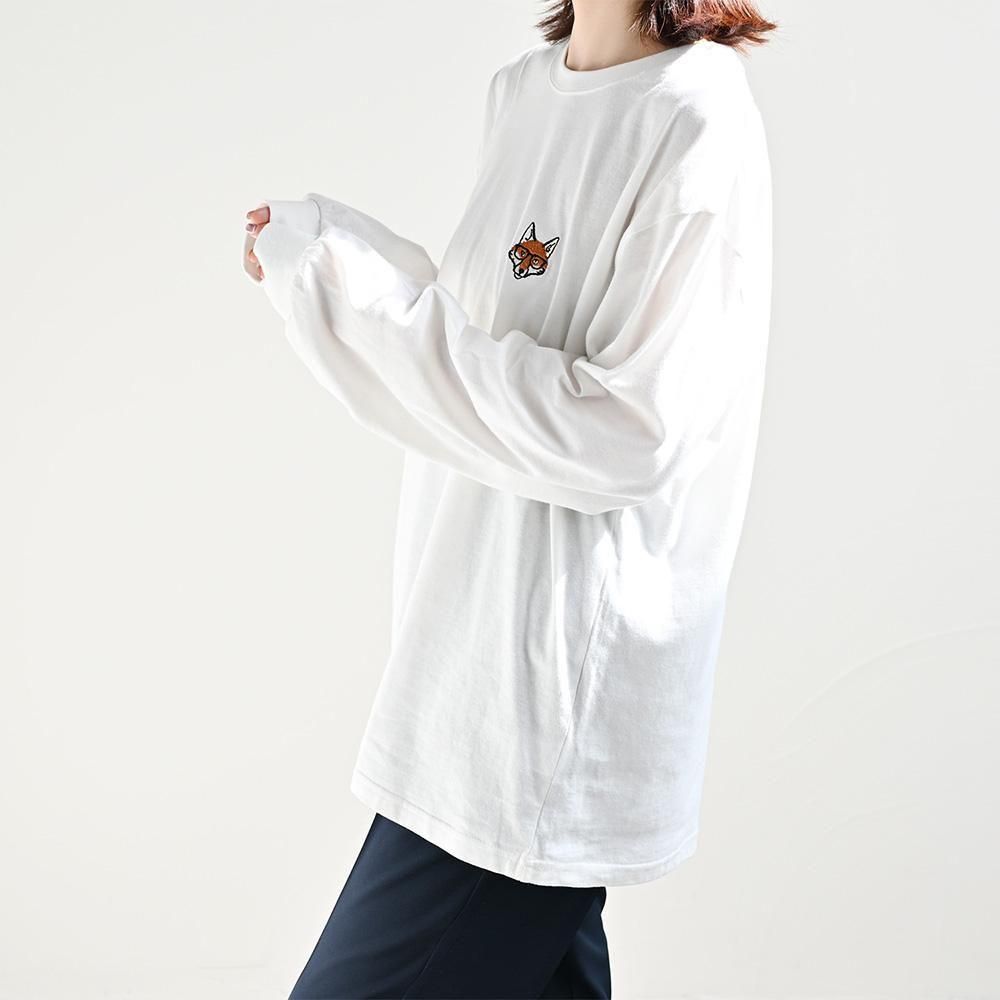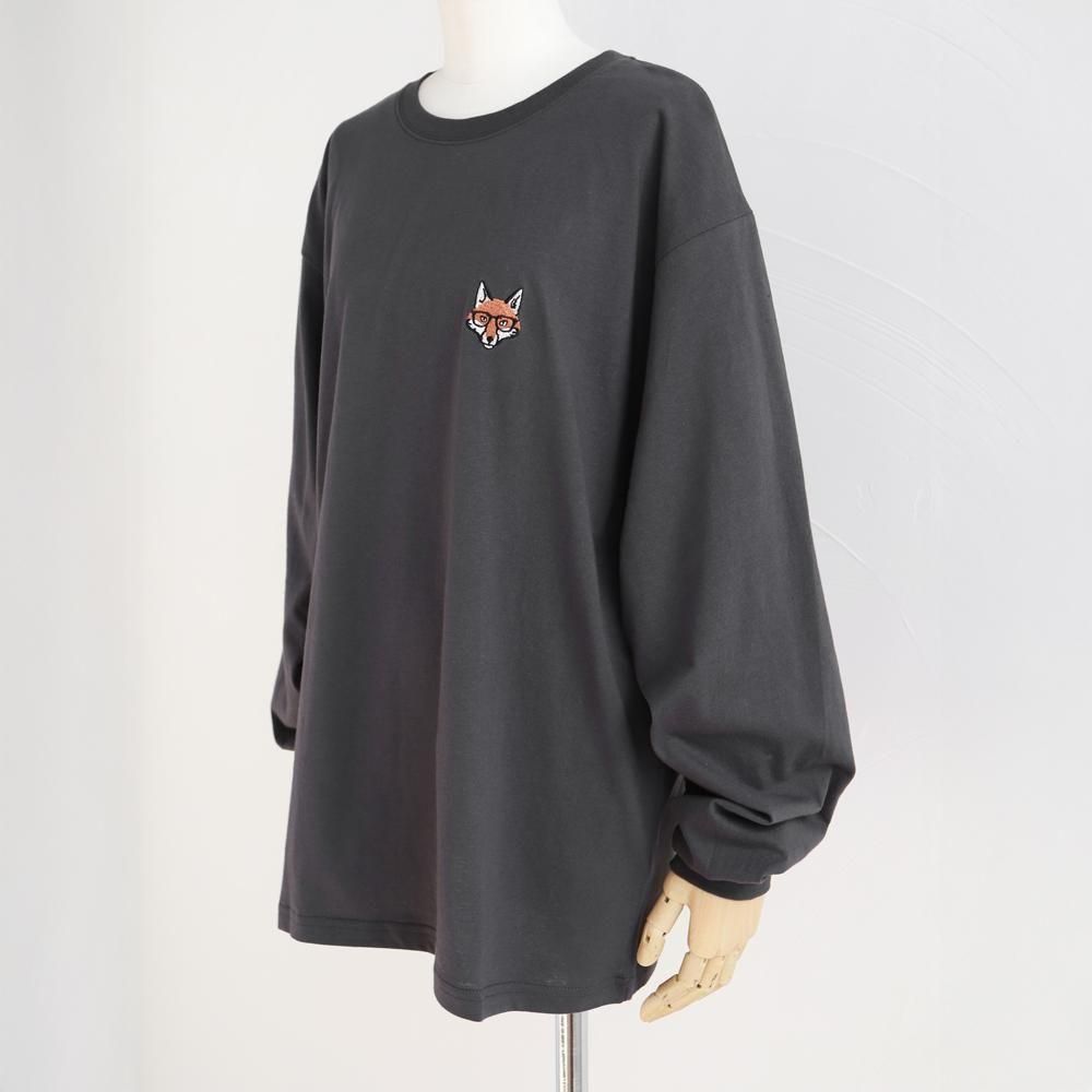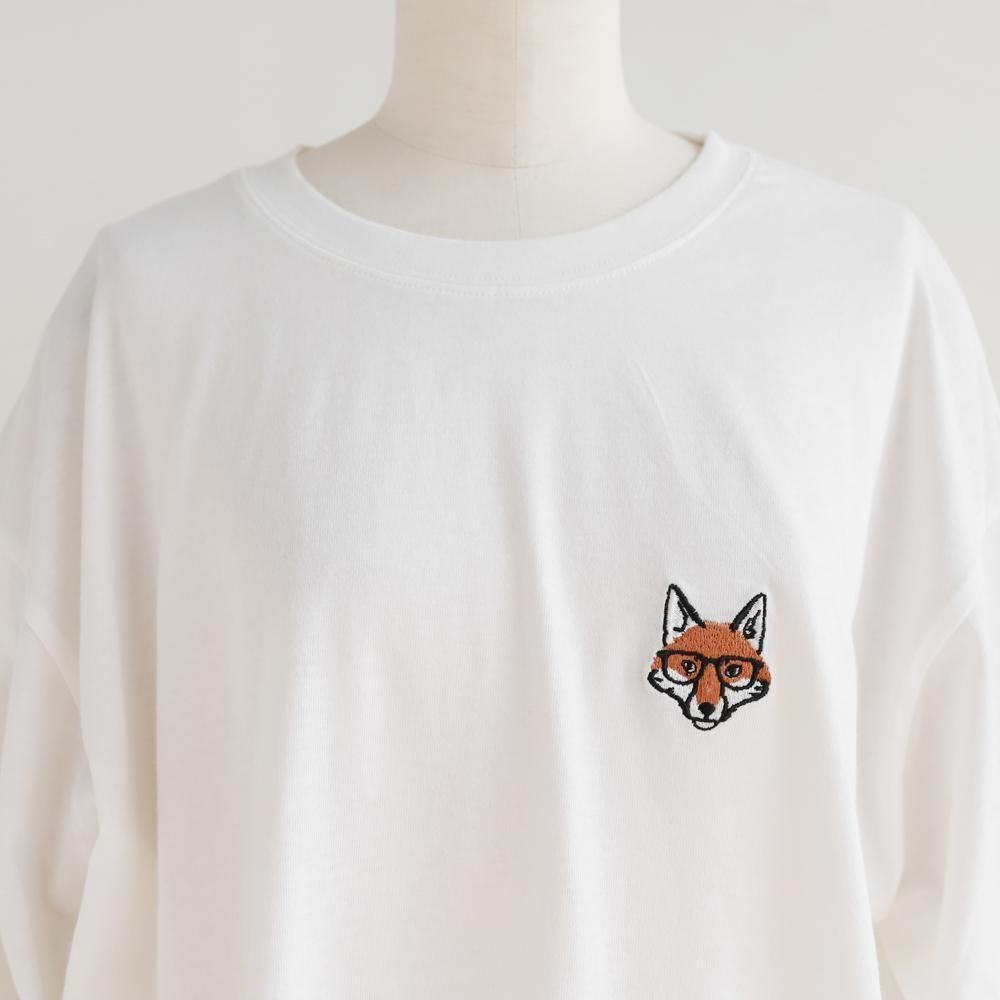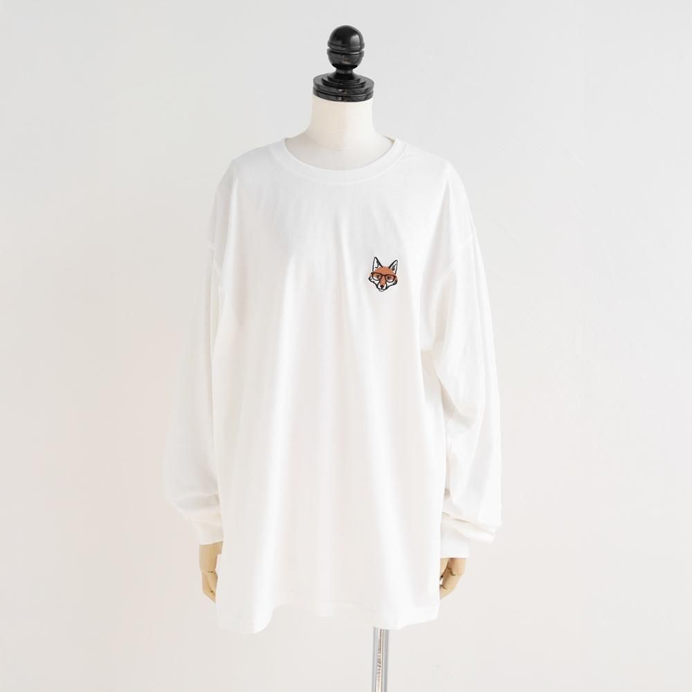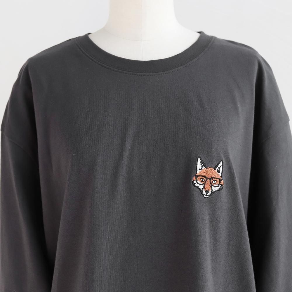 【ゆうパケ】綿100% キツネ刺繍ロンT