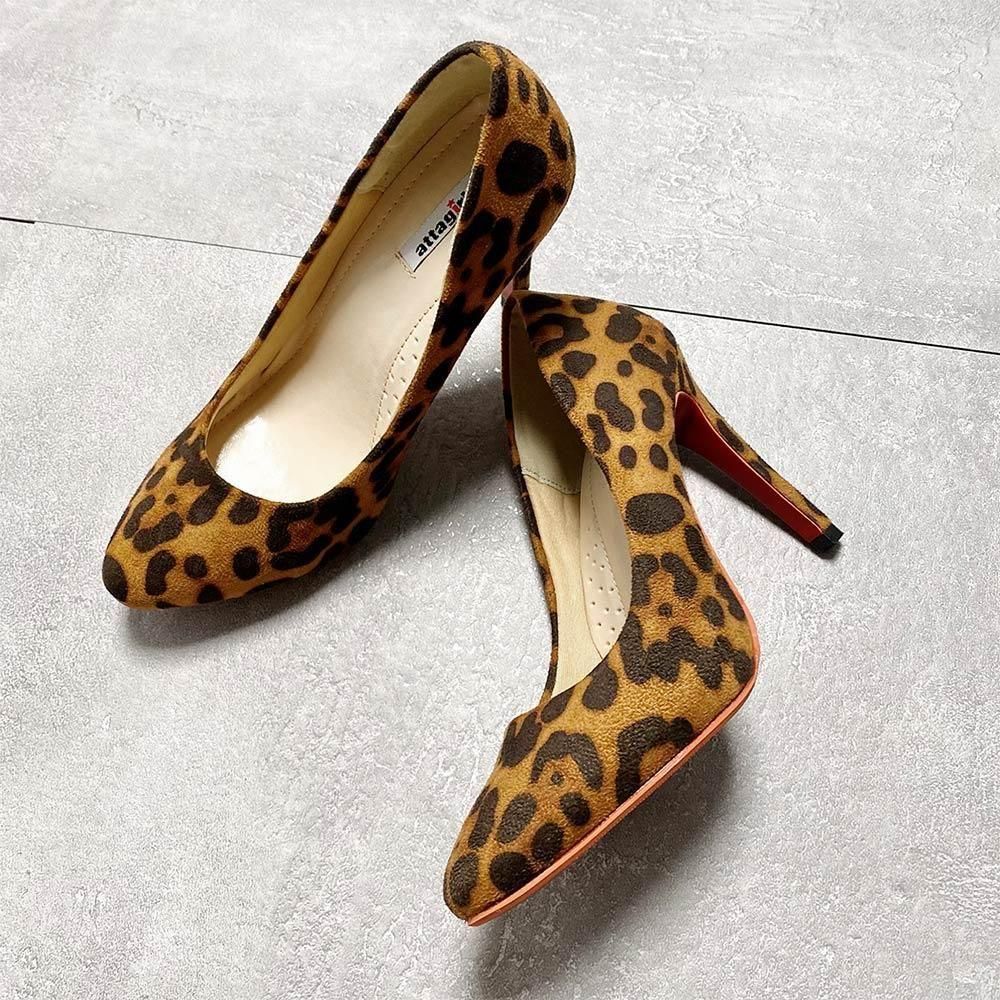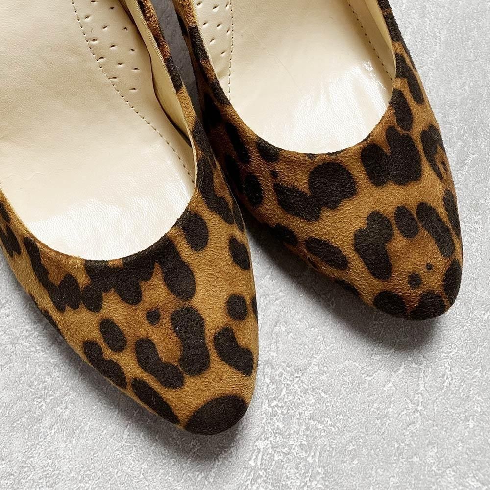 上品なヌバック調生地を使用したレオパード柄パンプス。