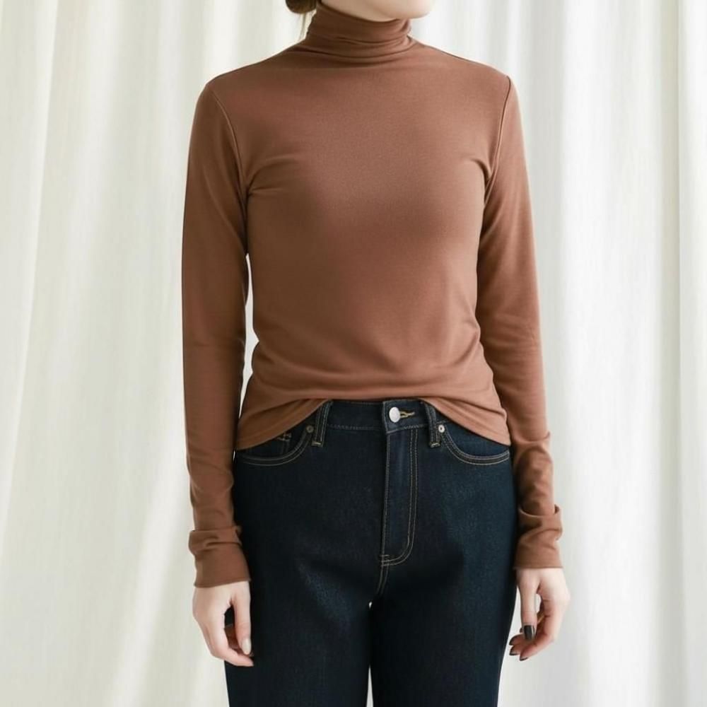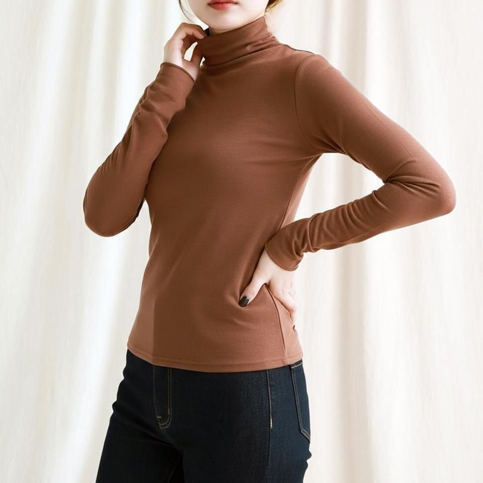 【洗濯OK】【Lサイズまで対応】やわらかレーヨン ハイネックニットプルオーバー
