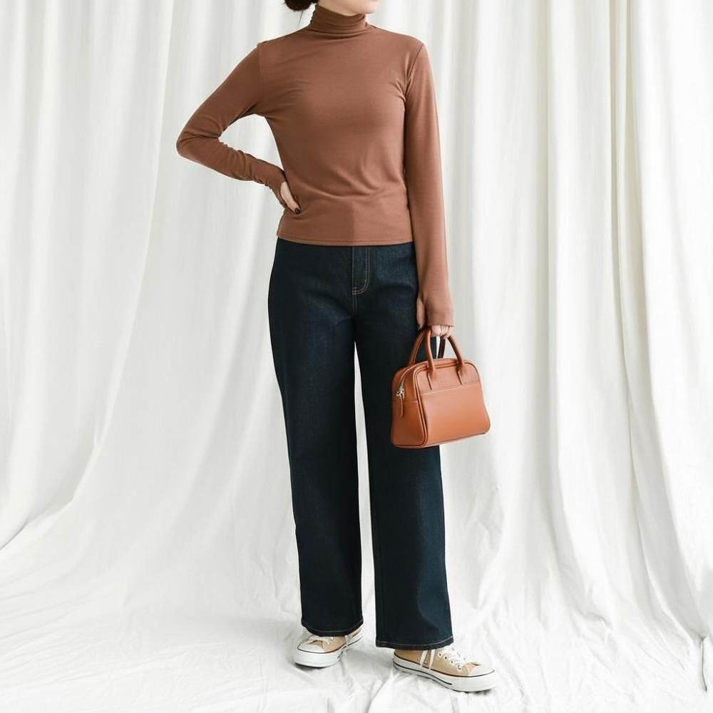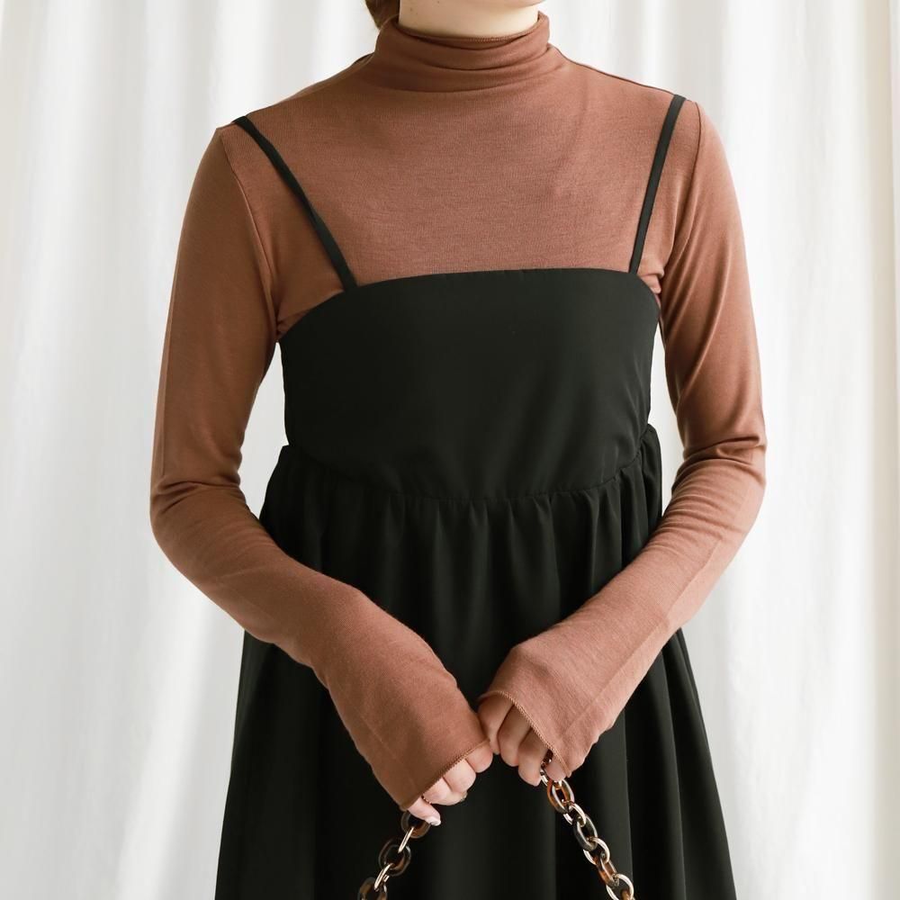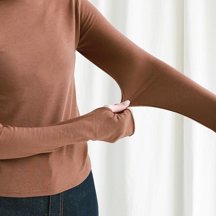 くしゅくしゅ袖が可愛い 指穴あきタートルネックニット