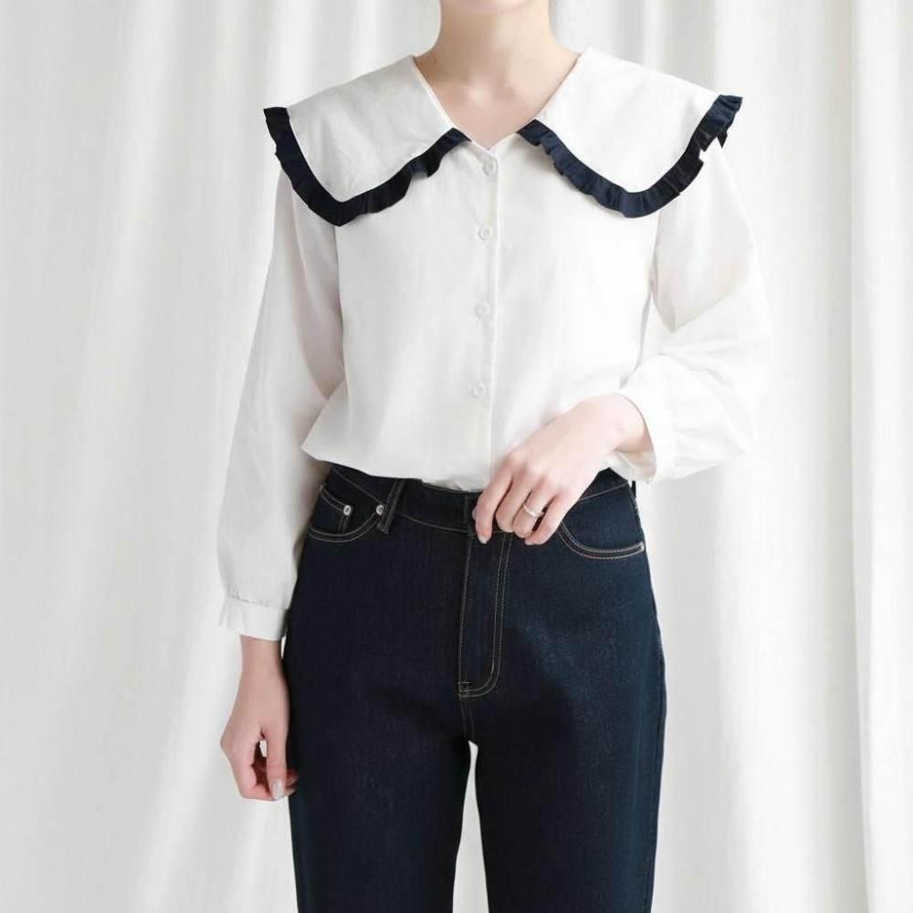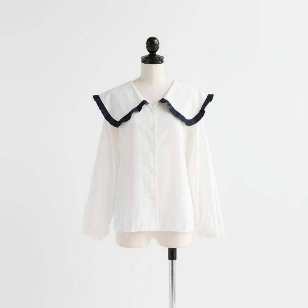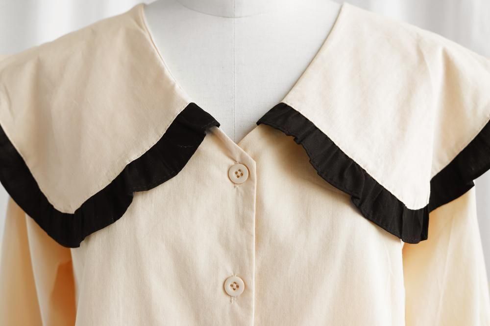 【SALE】【ゆうパケ】綿100% バイカラーフリルブラウス