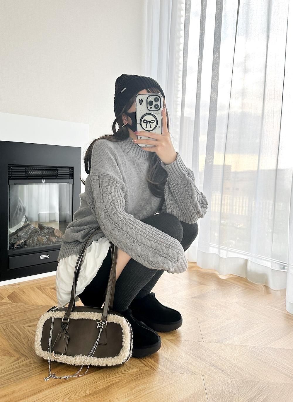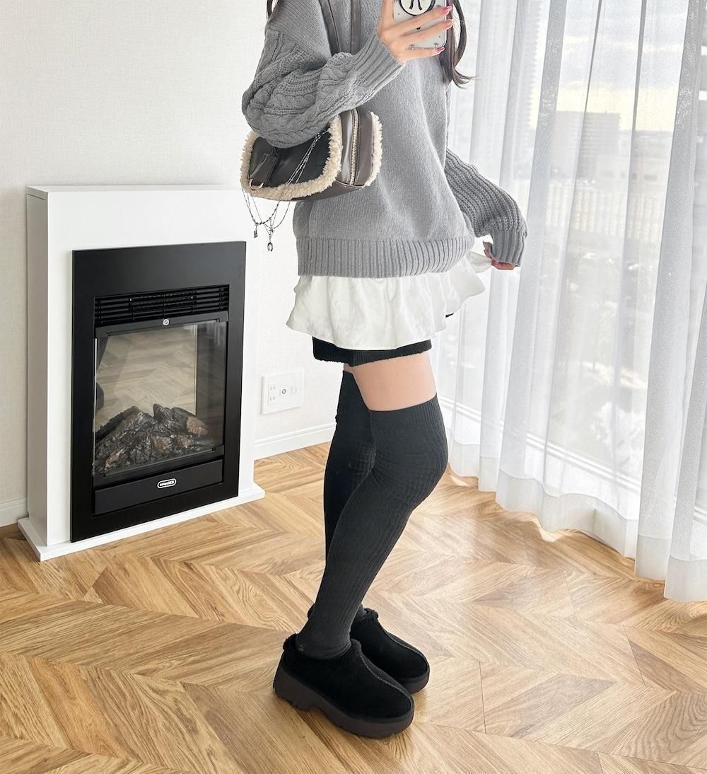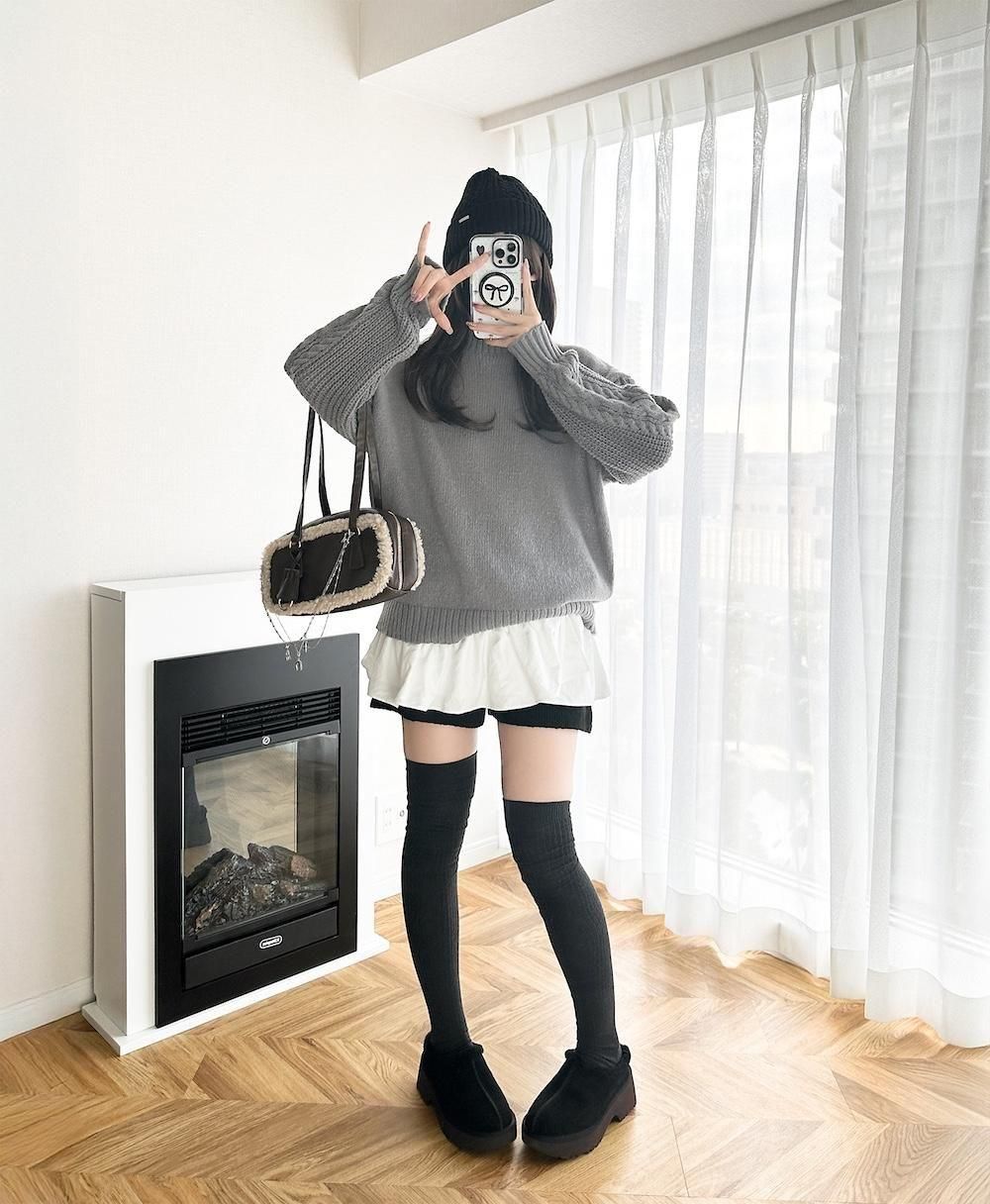 くしゅくしゅ袖が可愛い 指穴あきタートルネックニット