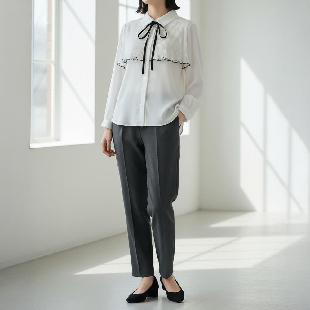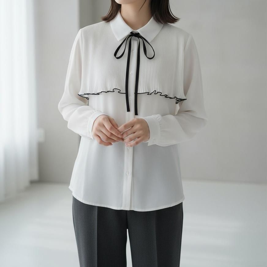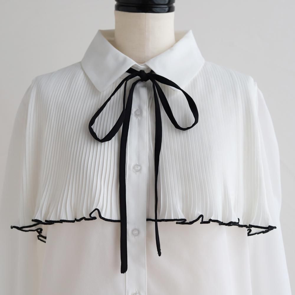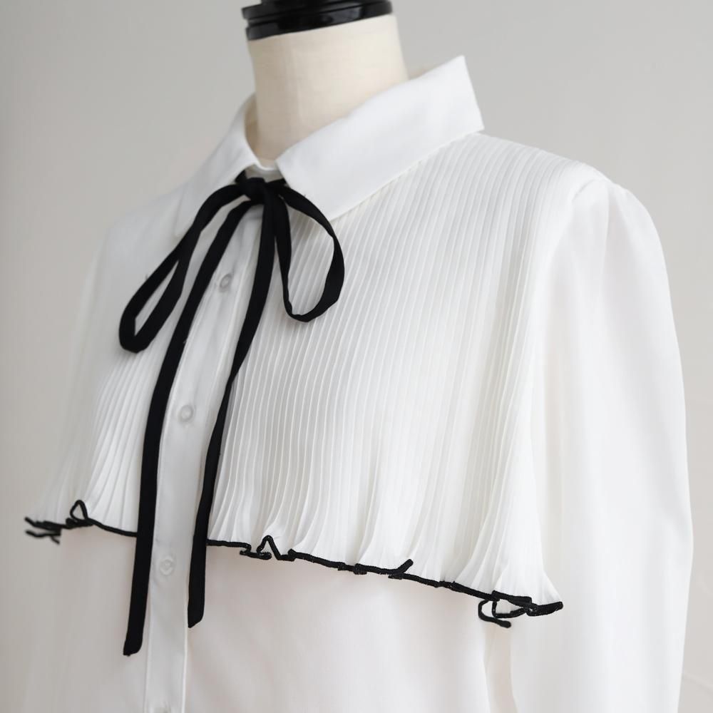 【SALE】【ゆうパケ】リボンタイ×プリーツヨークブラウス