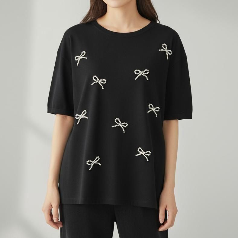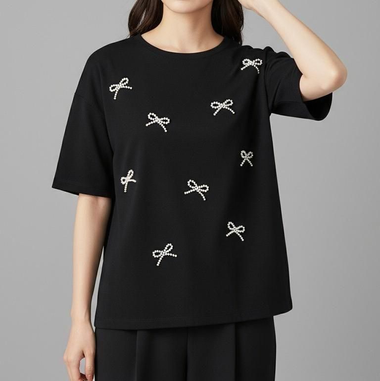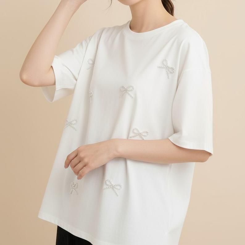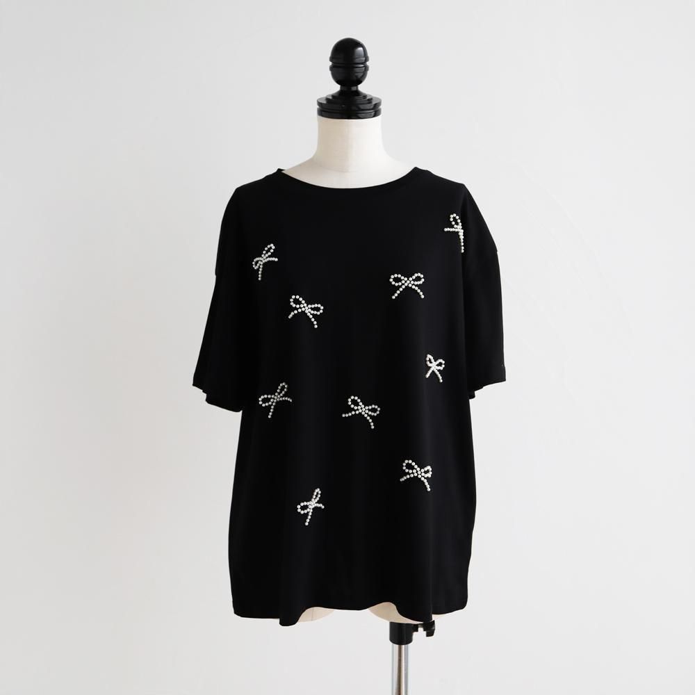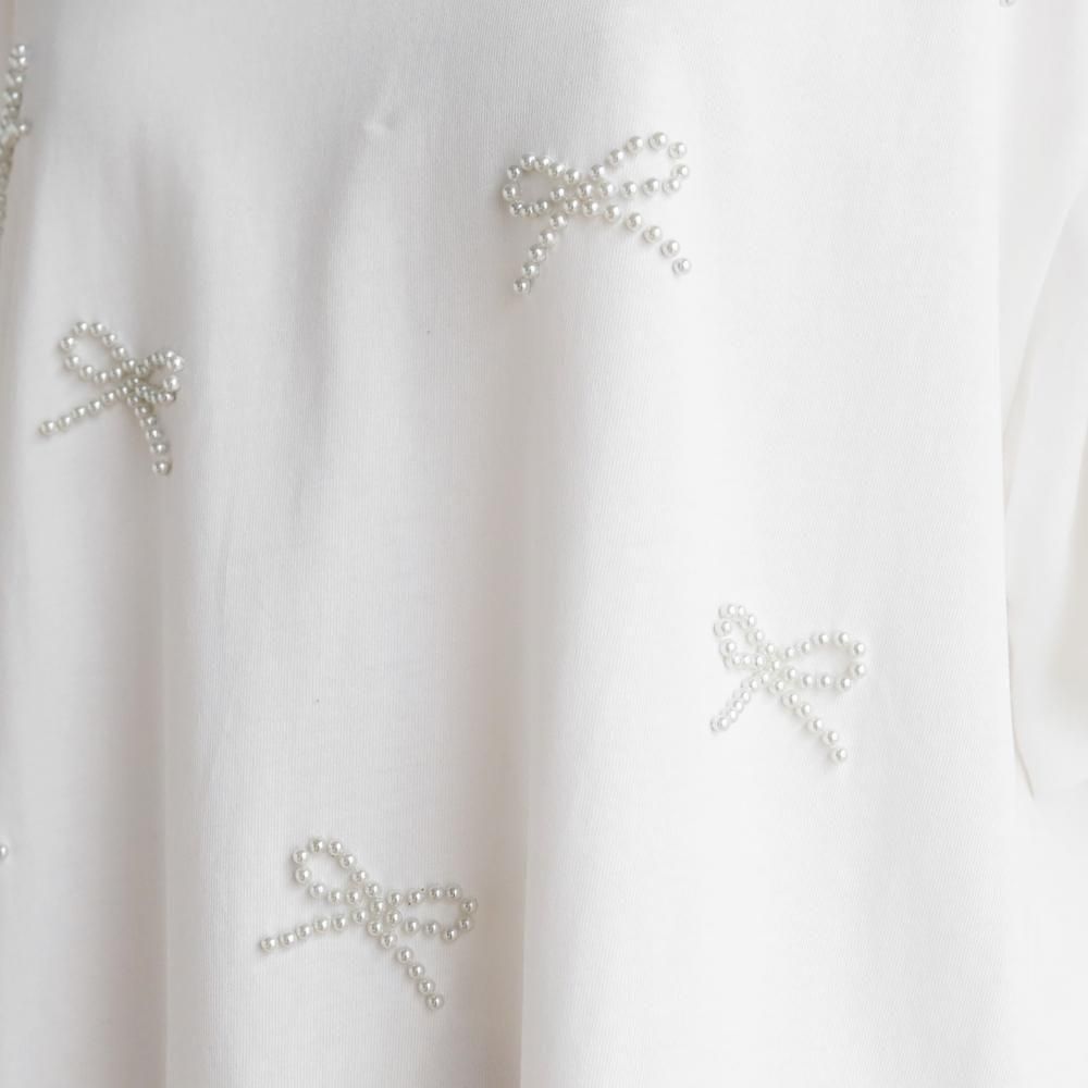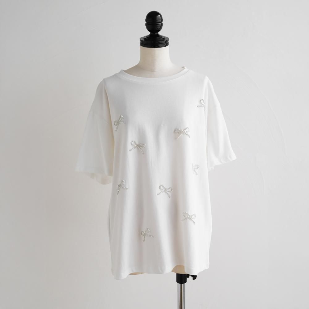 立体感のあるパールリボンが華やかなTシャツ。