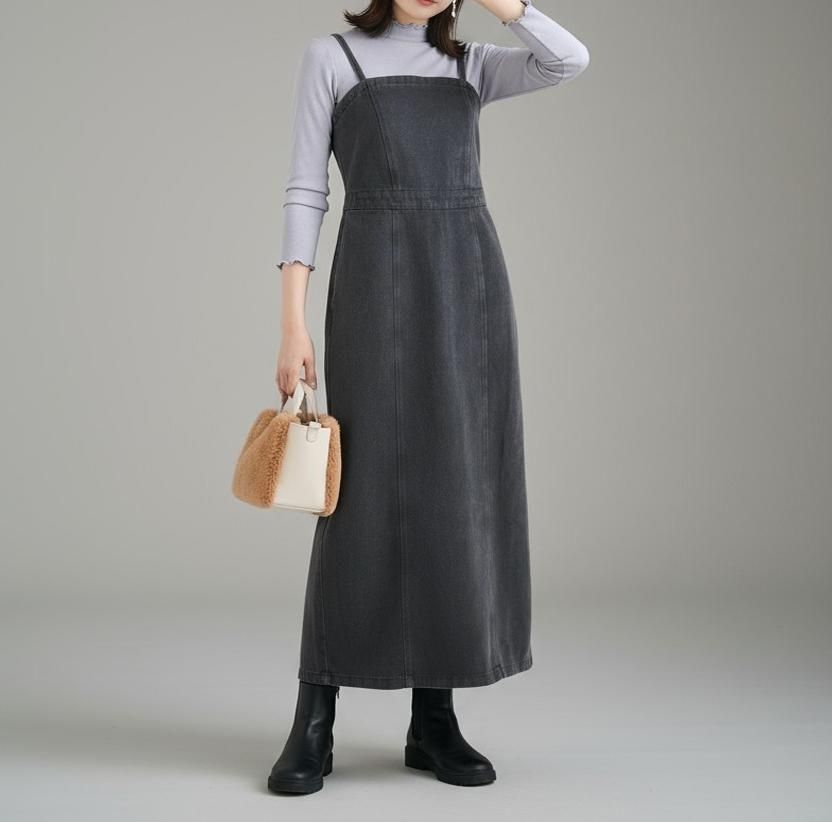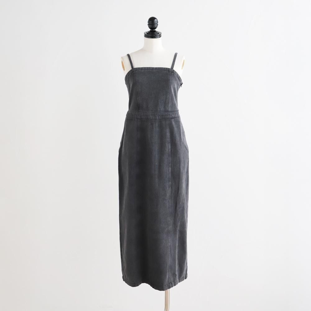 すっきりとしたIラインシルエットのデニムキャミワンピース。