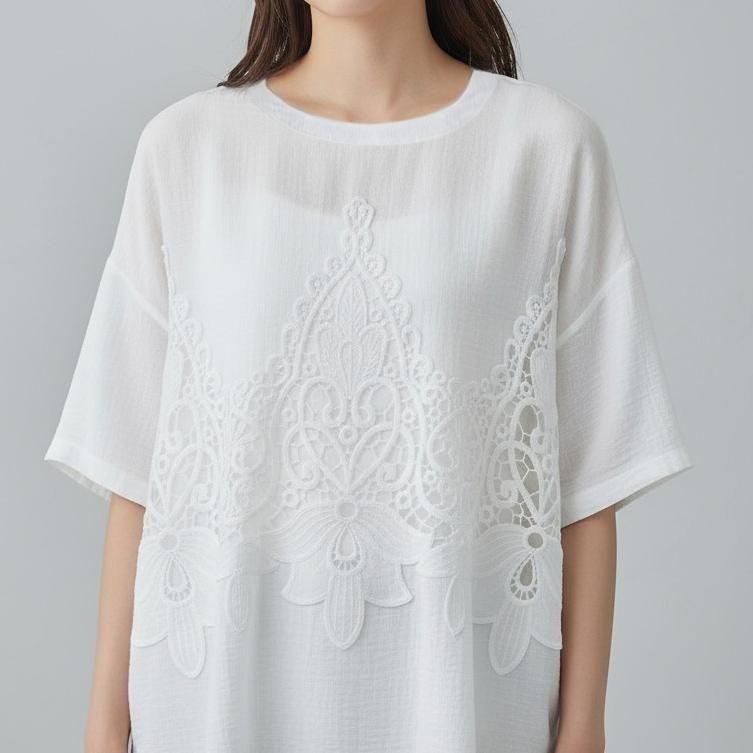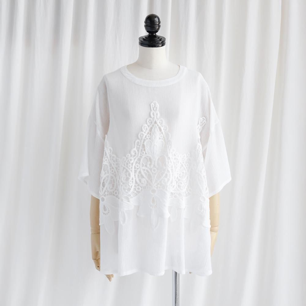 • <img class='new_mark_img1' src='https://img.shop-pro.jp/img/new/icons1.gif' style='border:none;display:inline;margin:0px;padding:0px;width:auto;' />【ゆうパケ】楊柳オーバーレースブラウス 楊柳オーバーレースブラウス ¥550