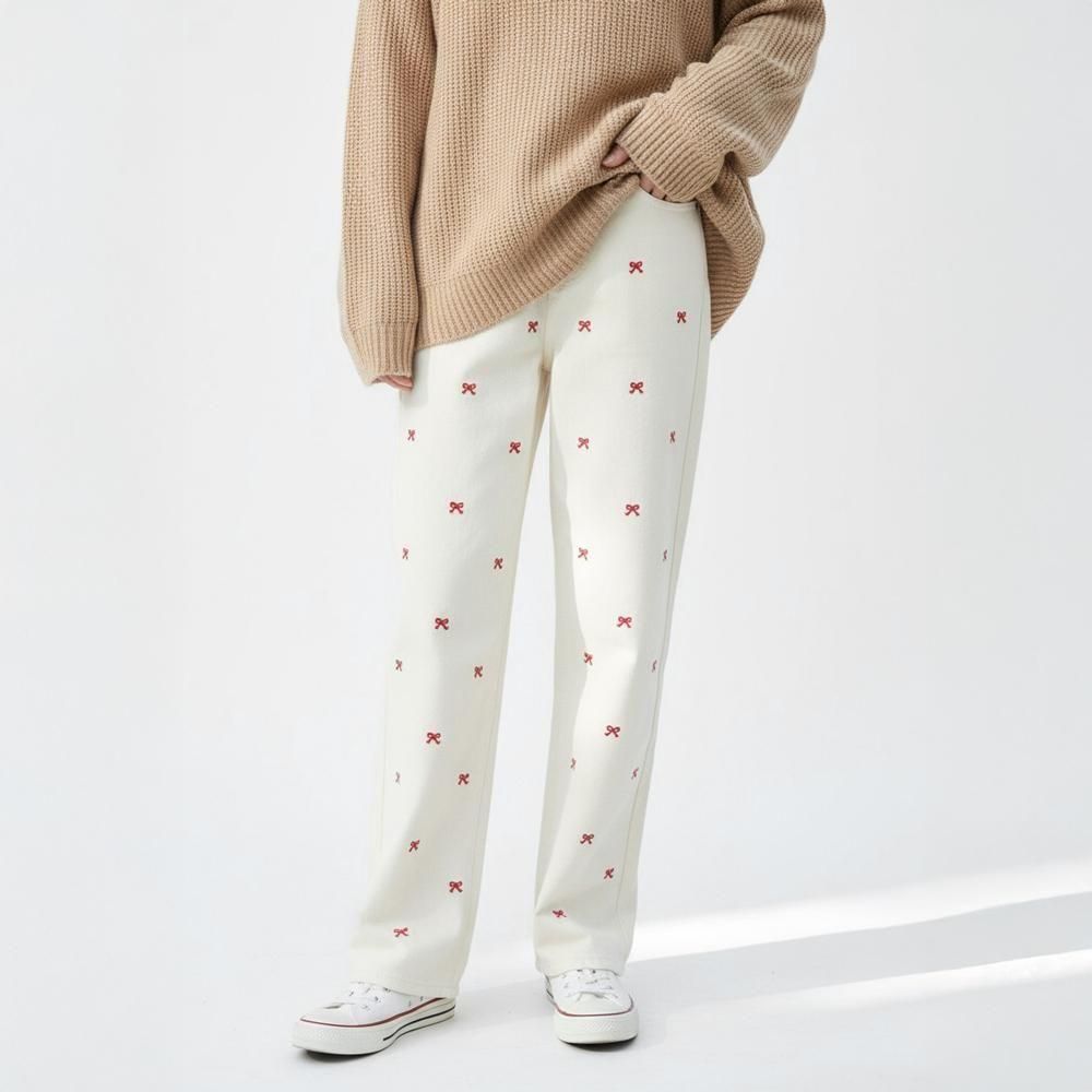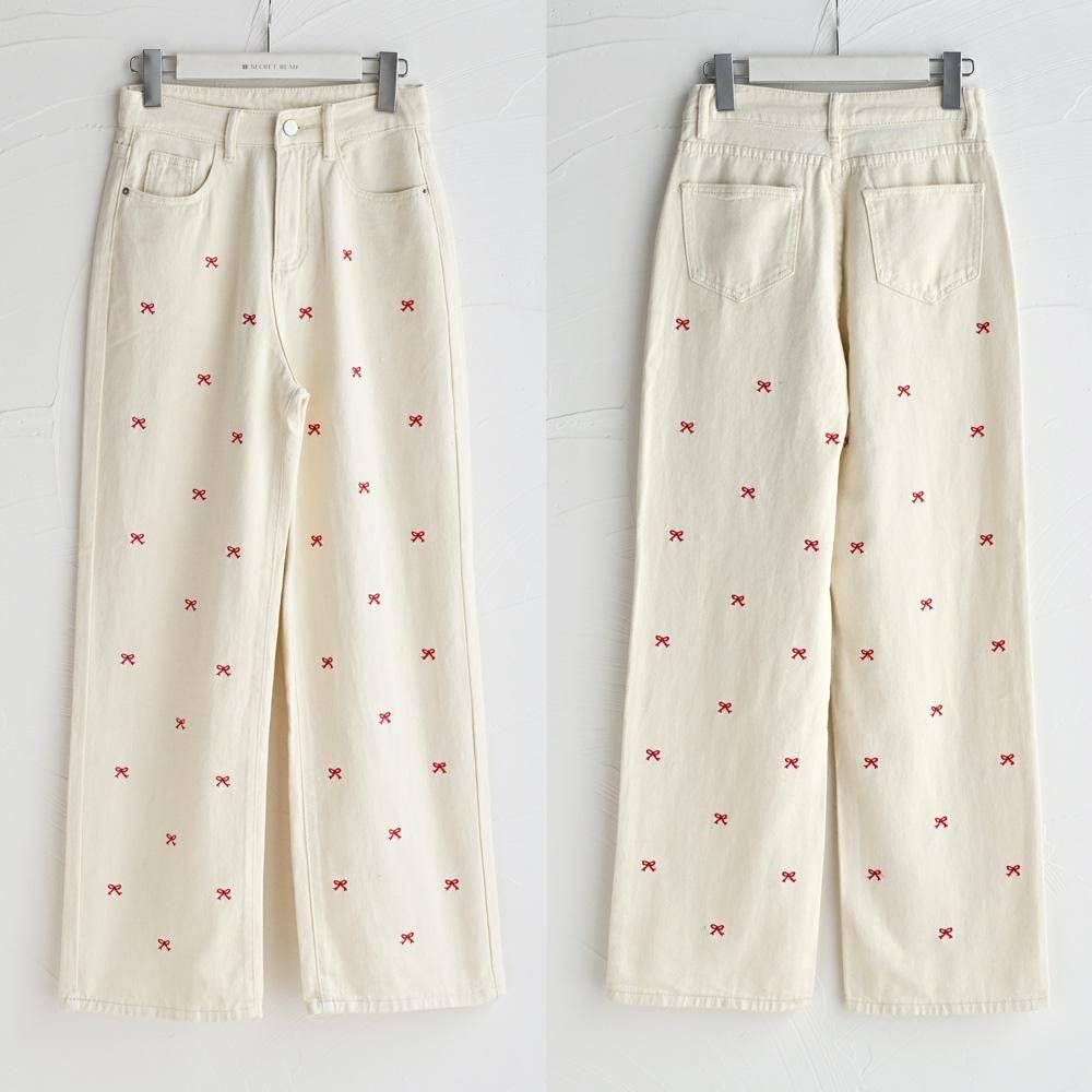 リボン刺しゅうデニムパンツ