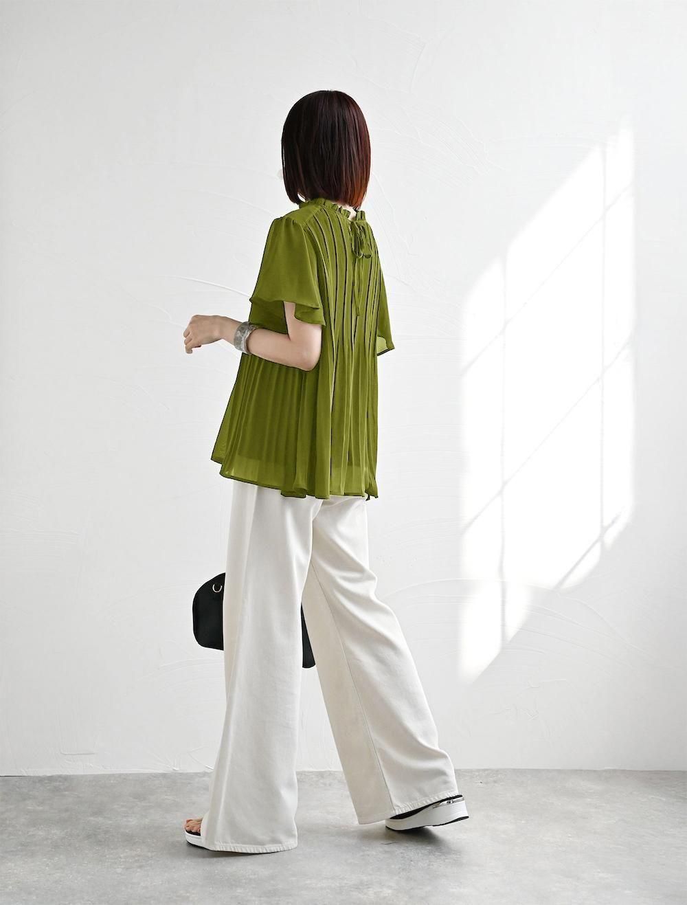 動くたびにふわっと揺れる、軽やかなブラウス。