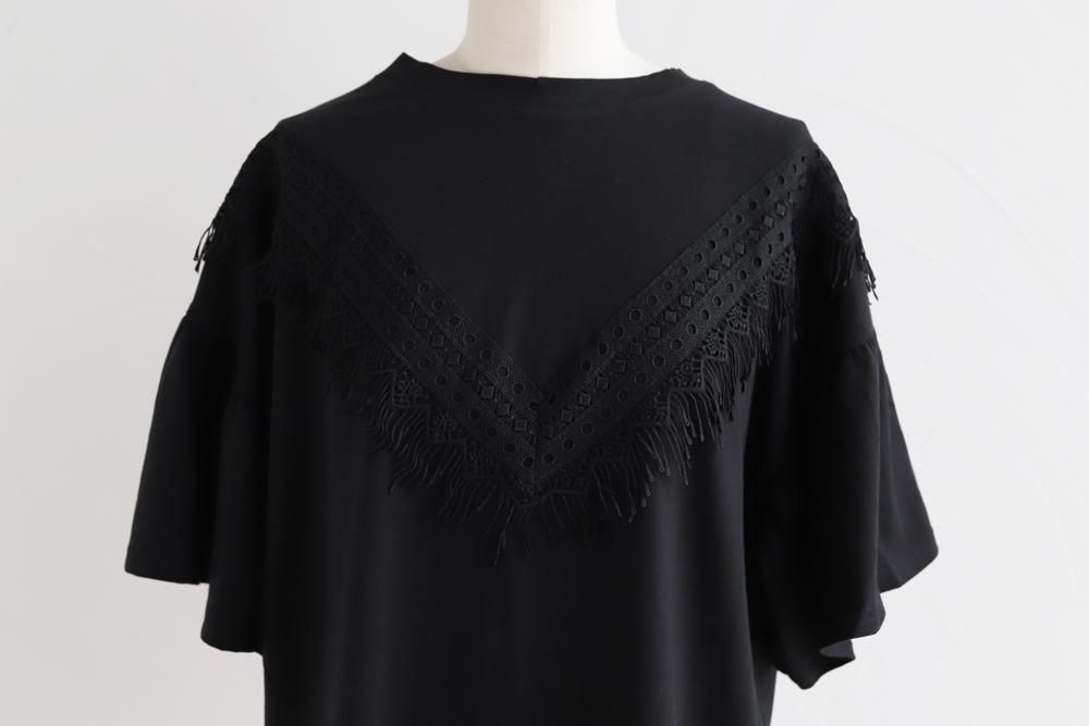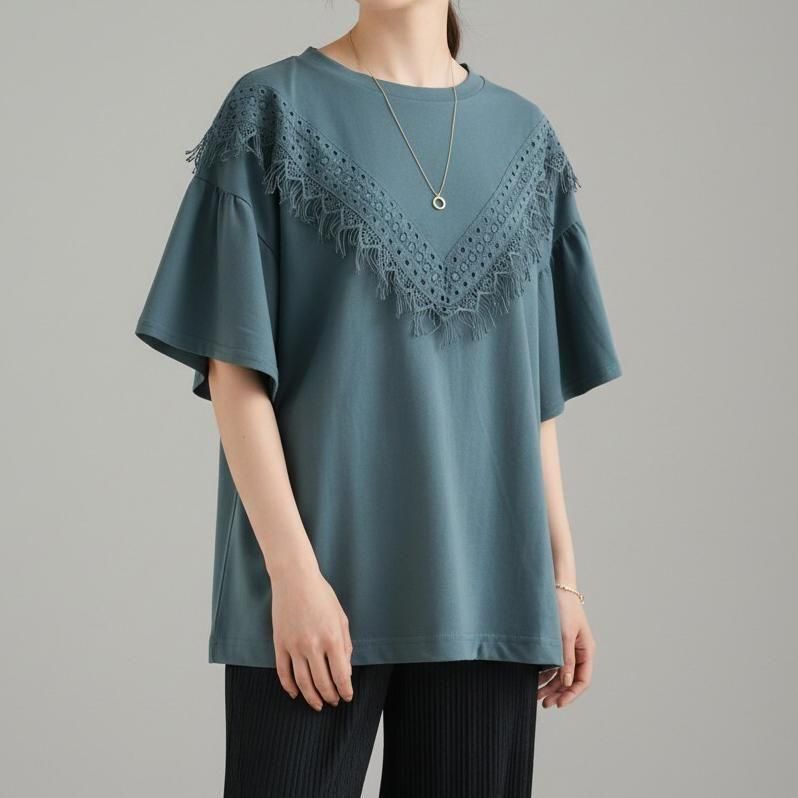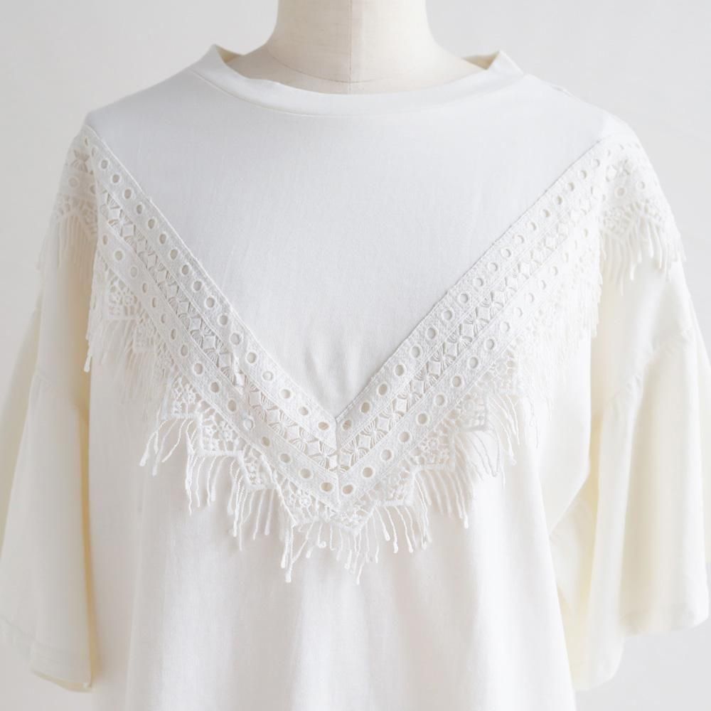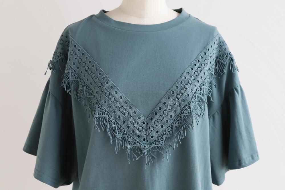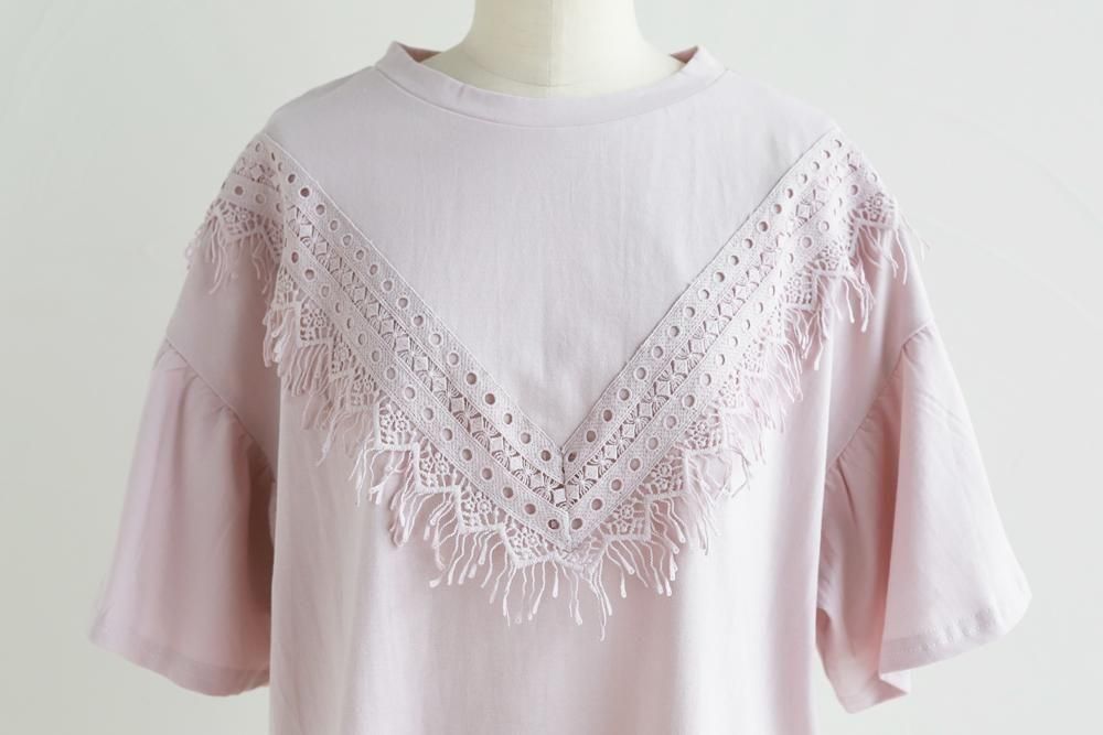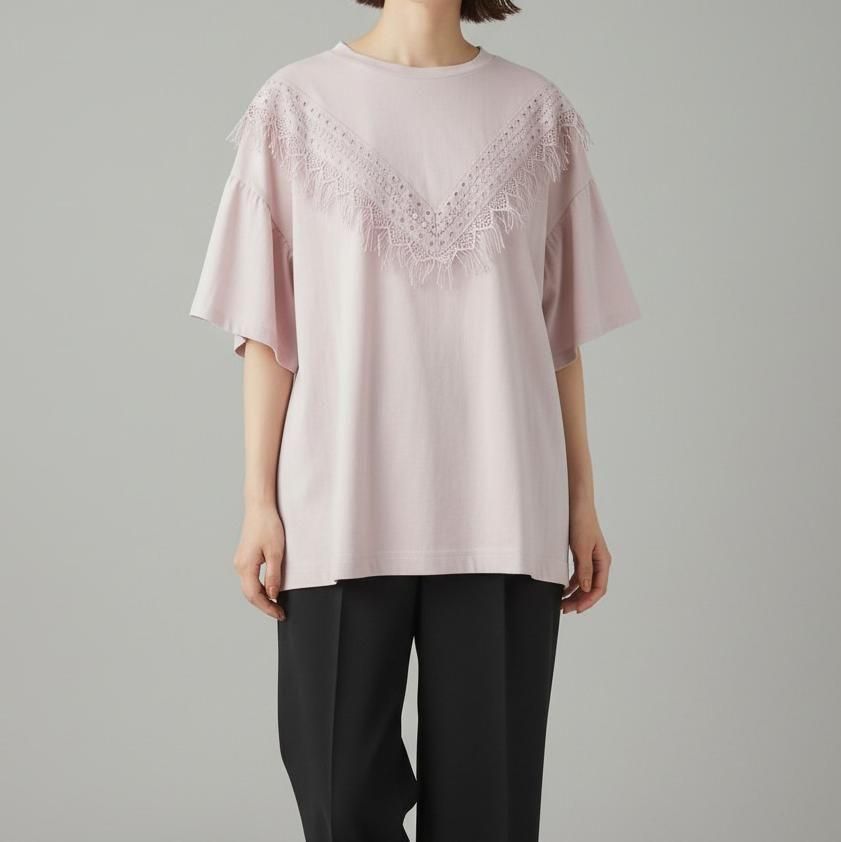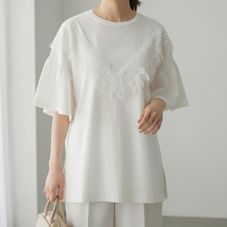 【L〜LL】袖レースイレギュラーヘムプルオーバー