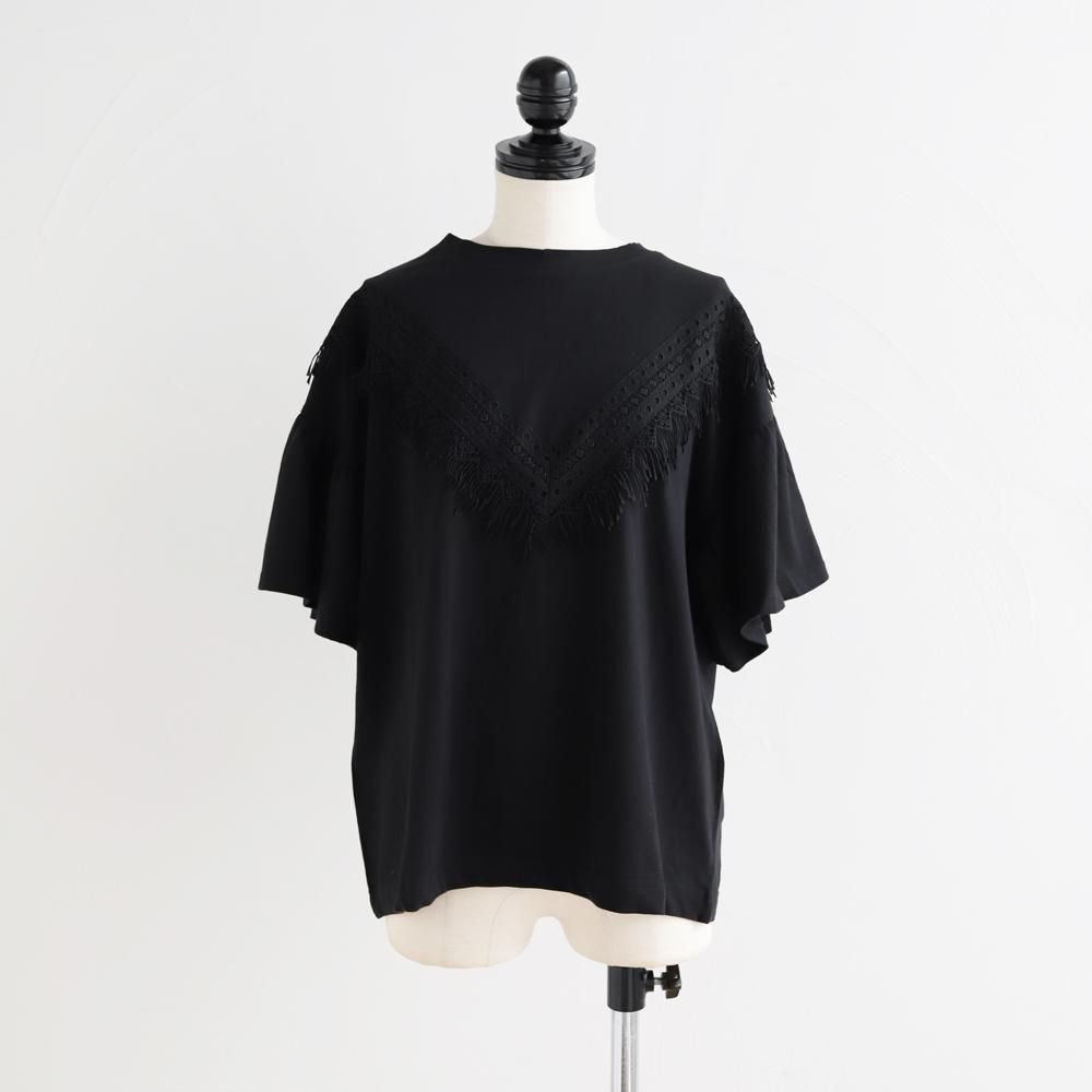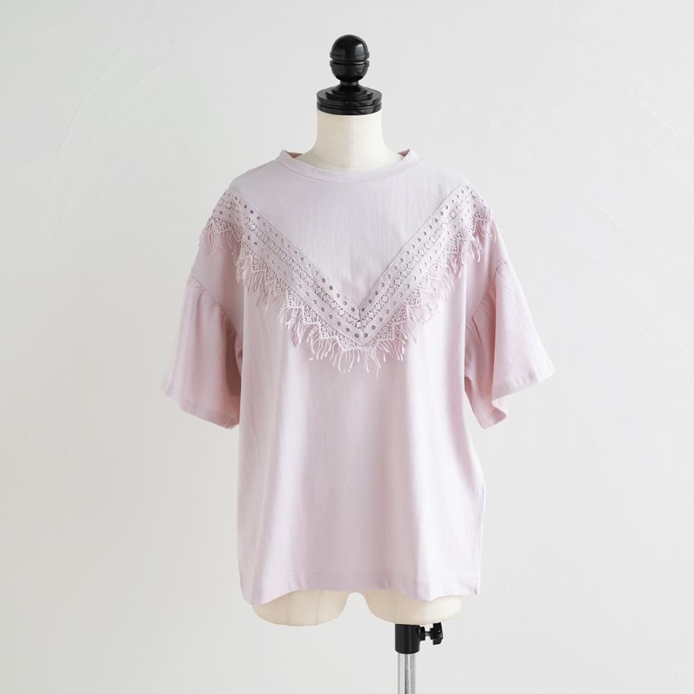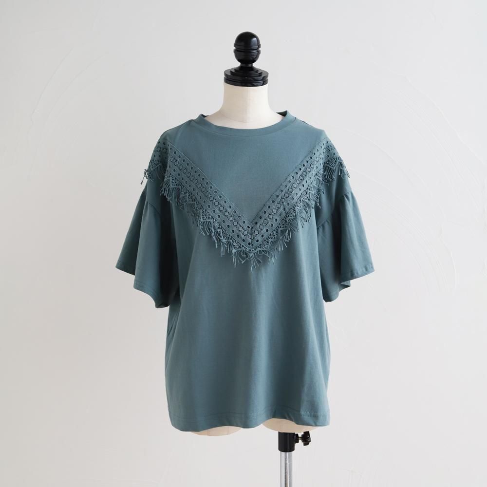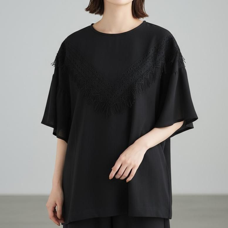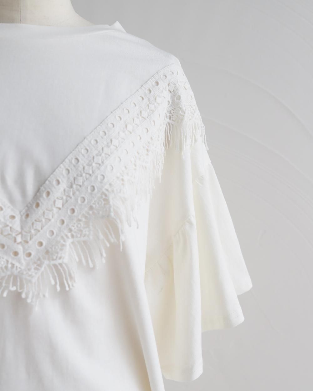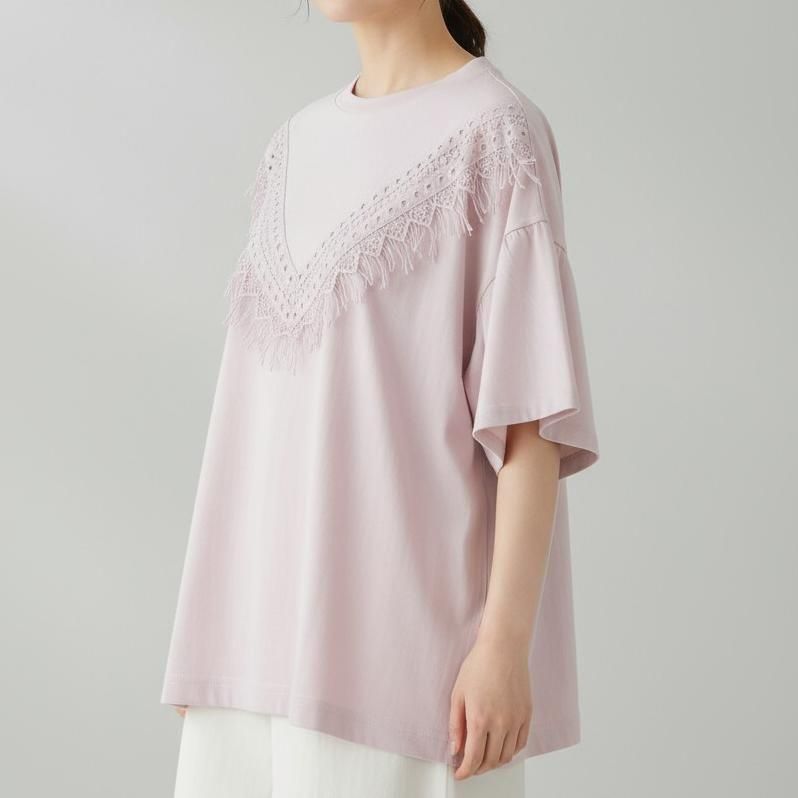 【L〜LL】袖レースイレギュラーヘムプルオーバー