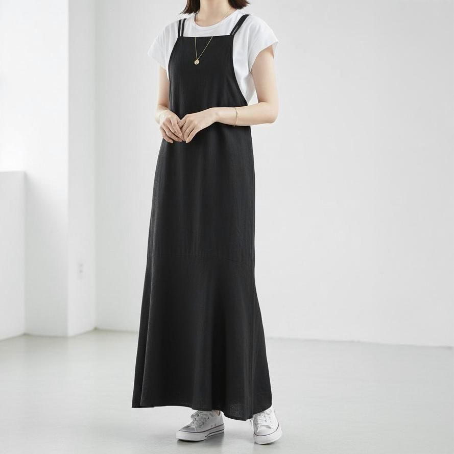 ポケット・裏地付き 楊柳先染めマキシスカート