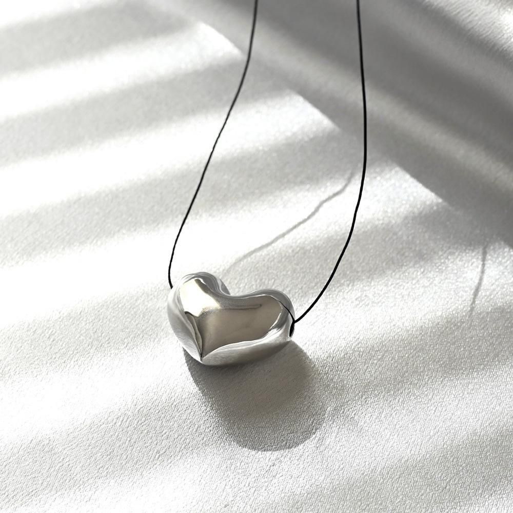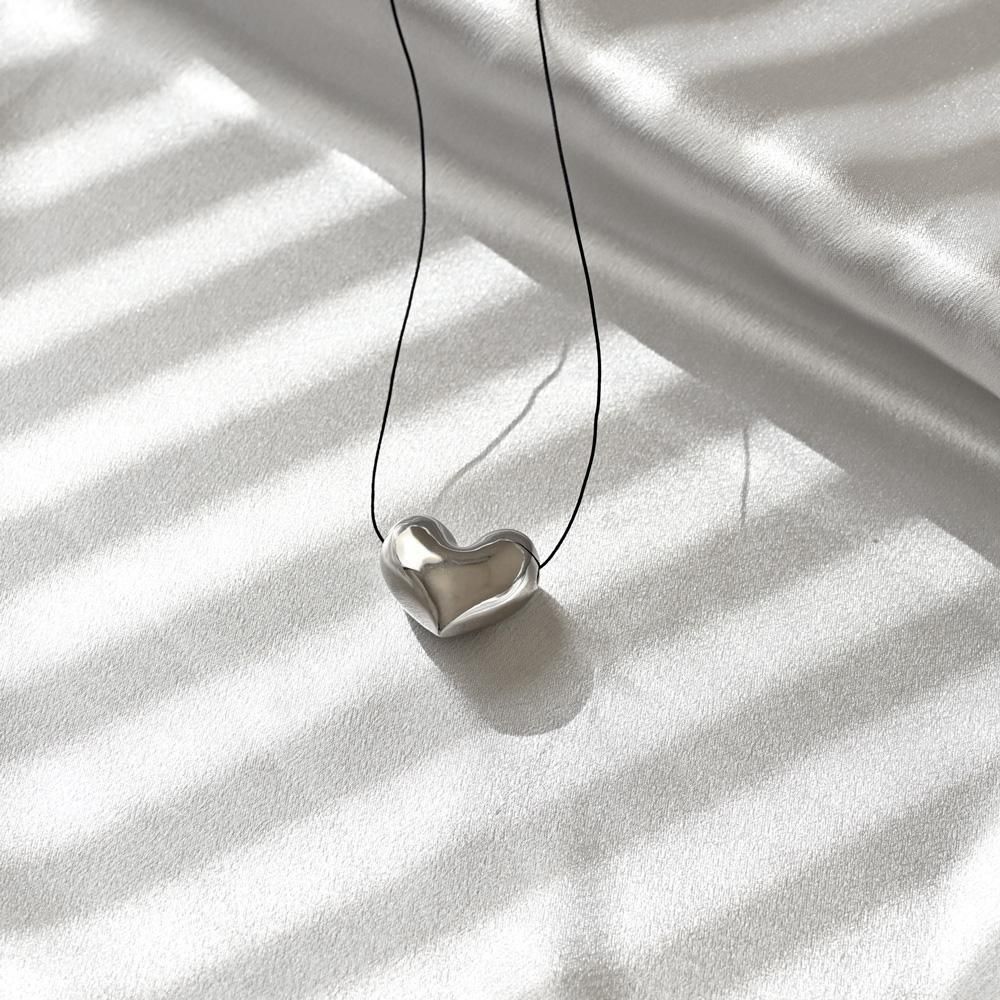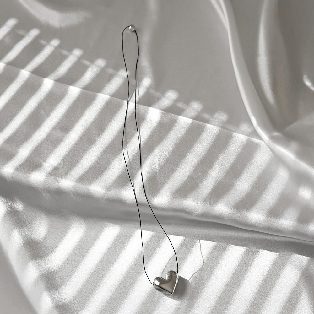 光を受けるたびに柔らかな輝きを放つ、丸みのあるシルバーハートのネックレス。