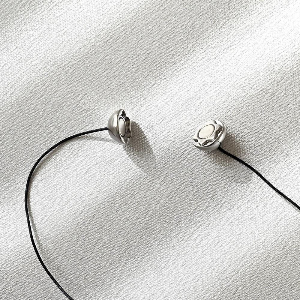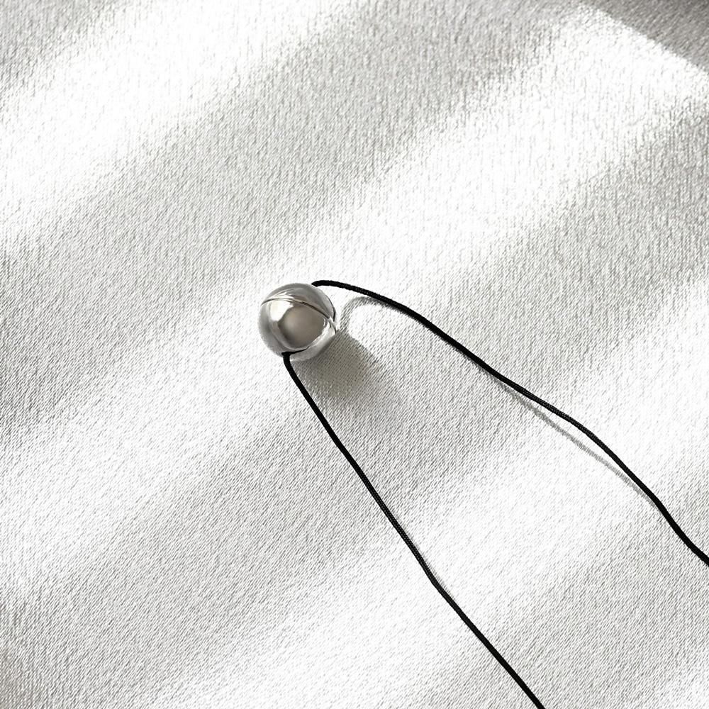 主張しすぎない華奢なコードは首周りを上品にまとめます。