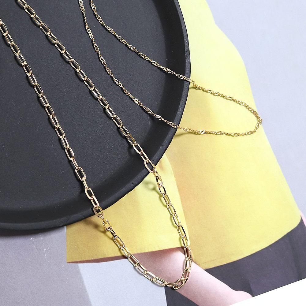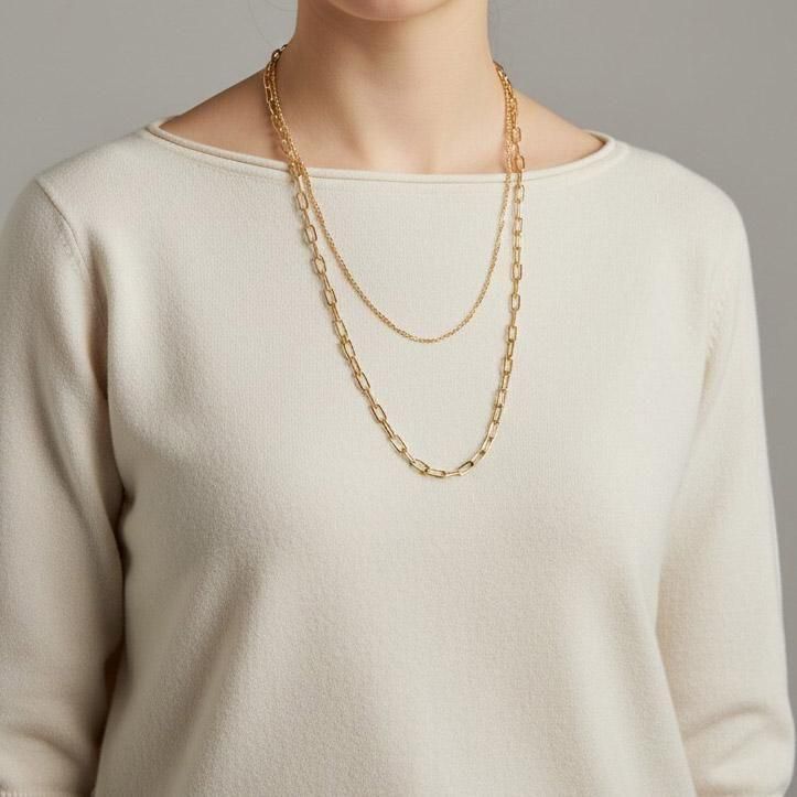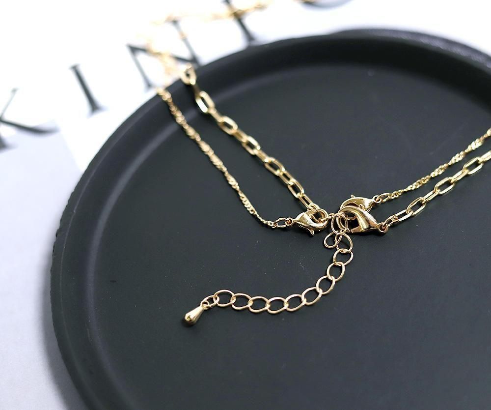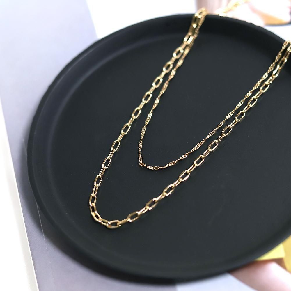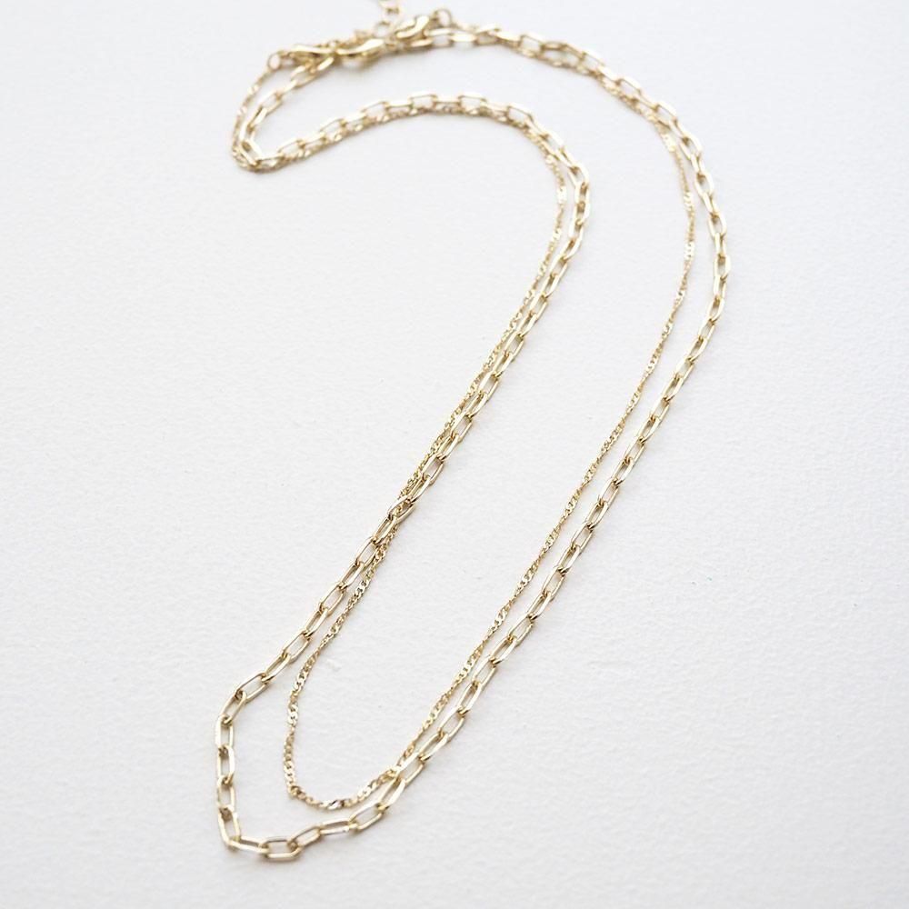 単品使いも可能な、異なるゴールドチェーンの2連ネックレス。