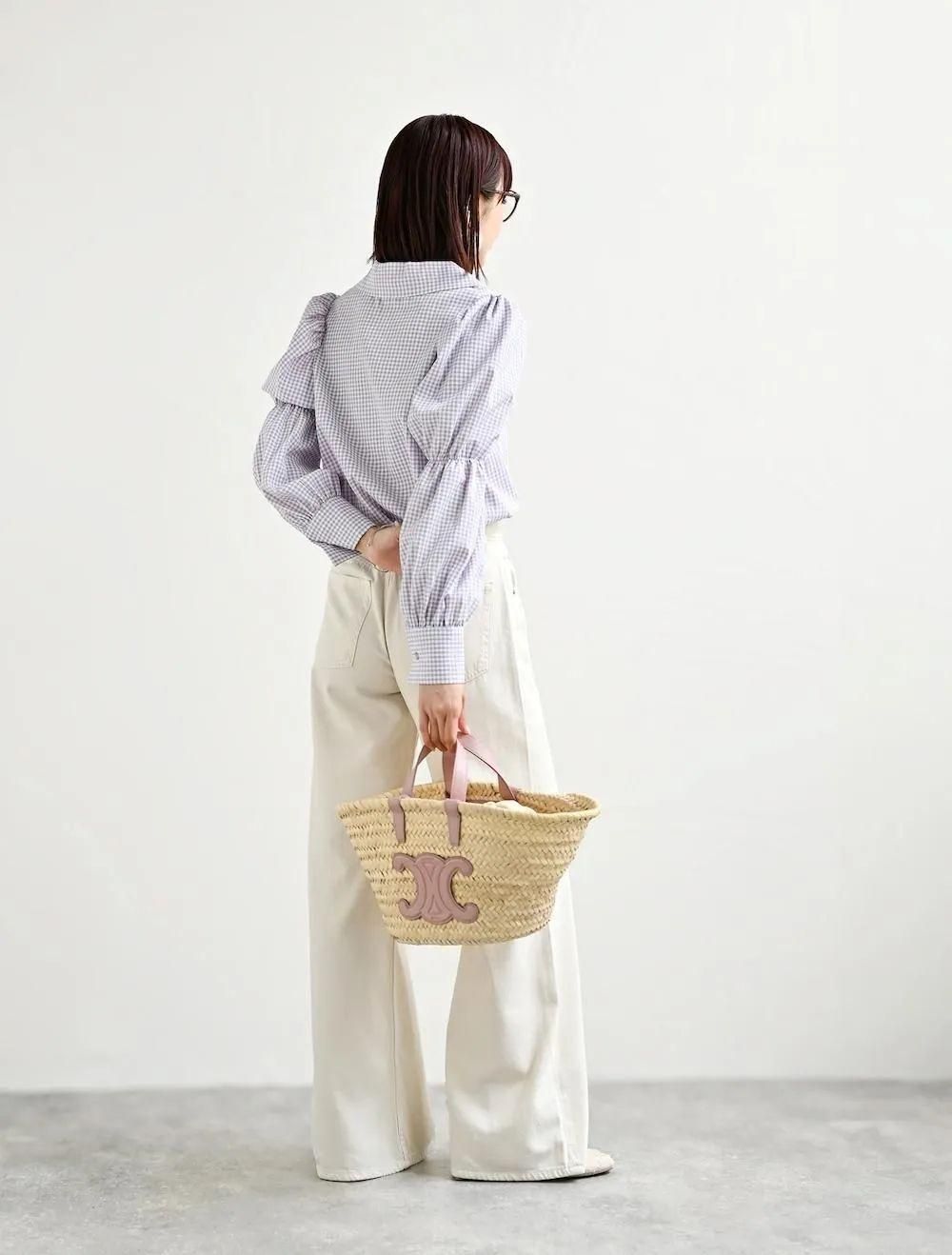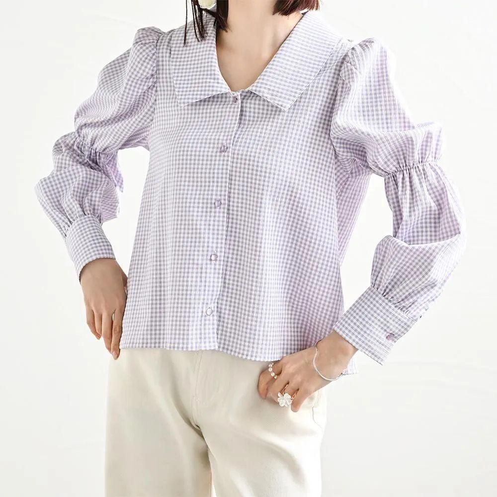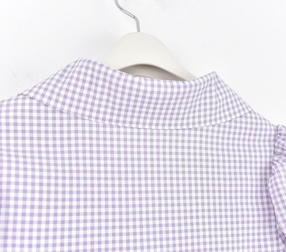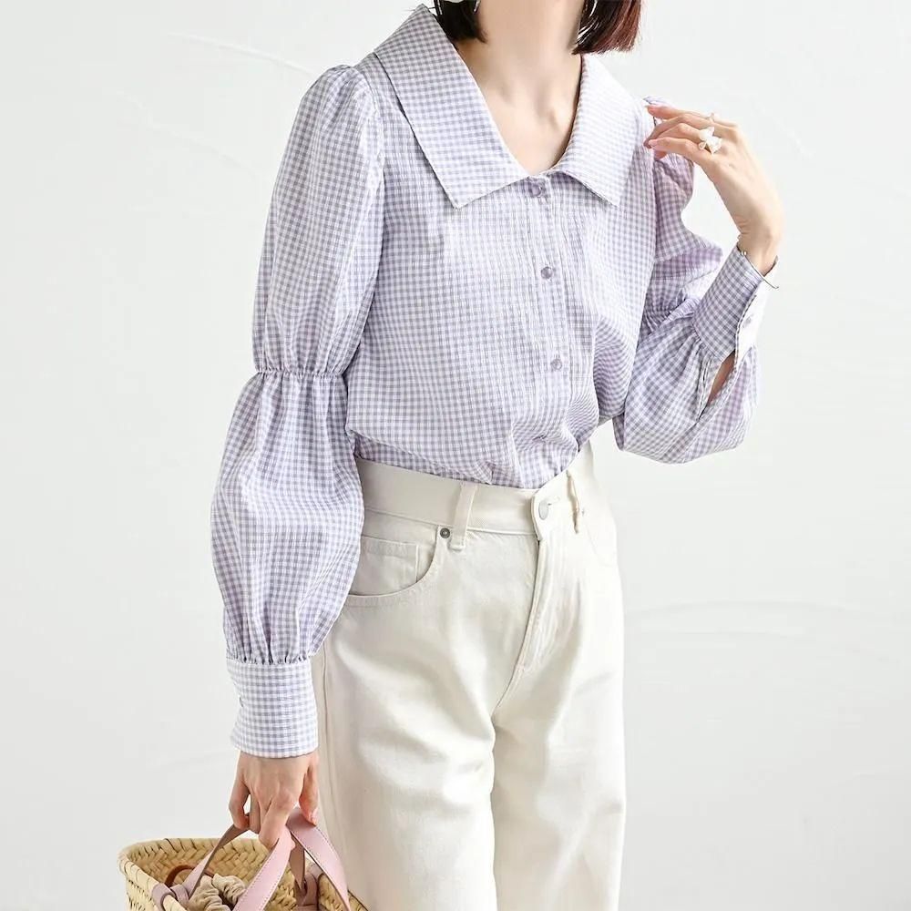 パフスリーブチェックブラウス