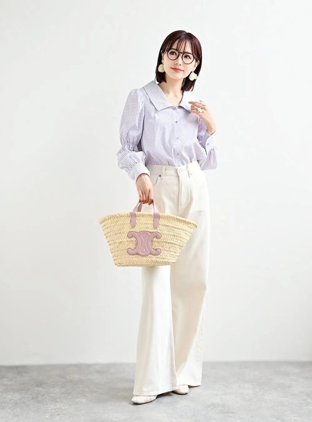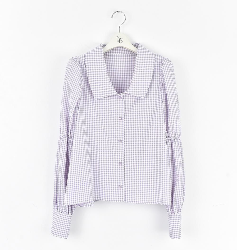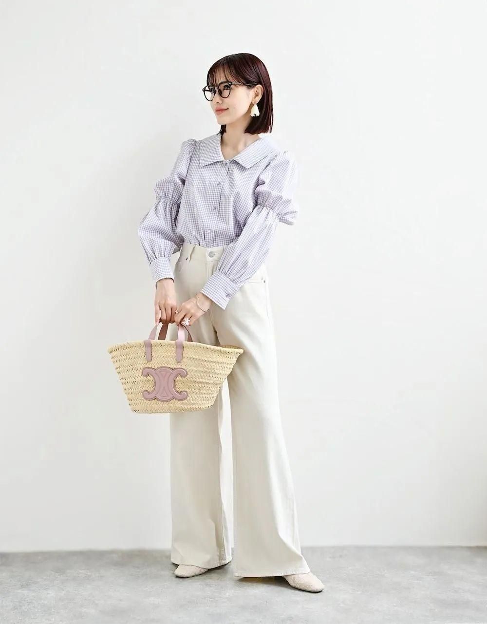 パフスリーブチェックブラウス